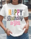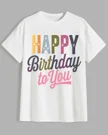 Happy Birthday to You Colorful Text Summer Cotton Graphic T Shirt - Casual Vintage, Short Sleeve, Soft Fabric, Comfortable Fit