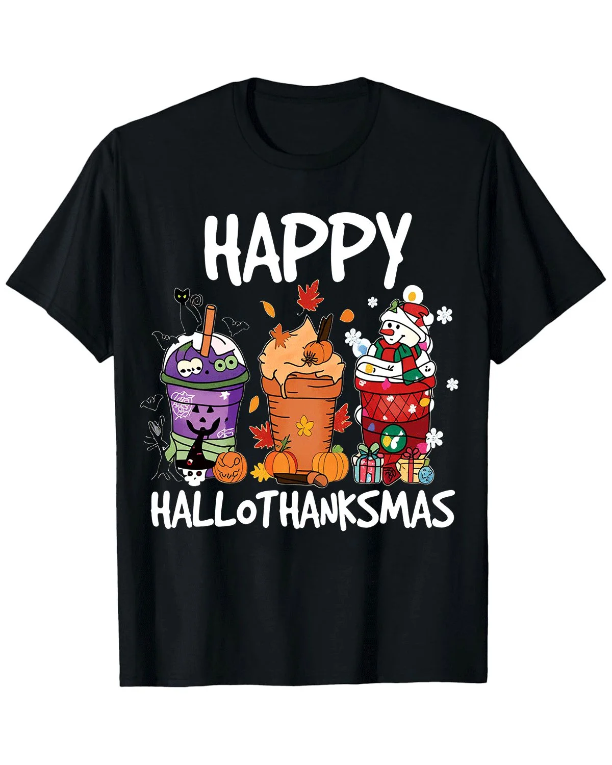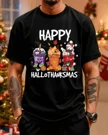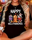 Christmas Chickens and Reindeer in Santa Hats Summer Cotton Graphic T Shirt - Funny Retro, Short Sleeve, Soft Fabric, Comfortable Fit