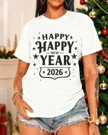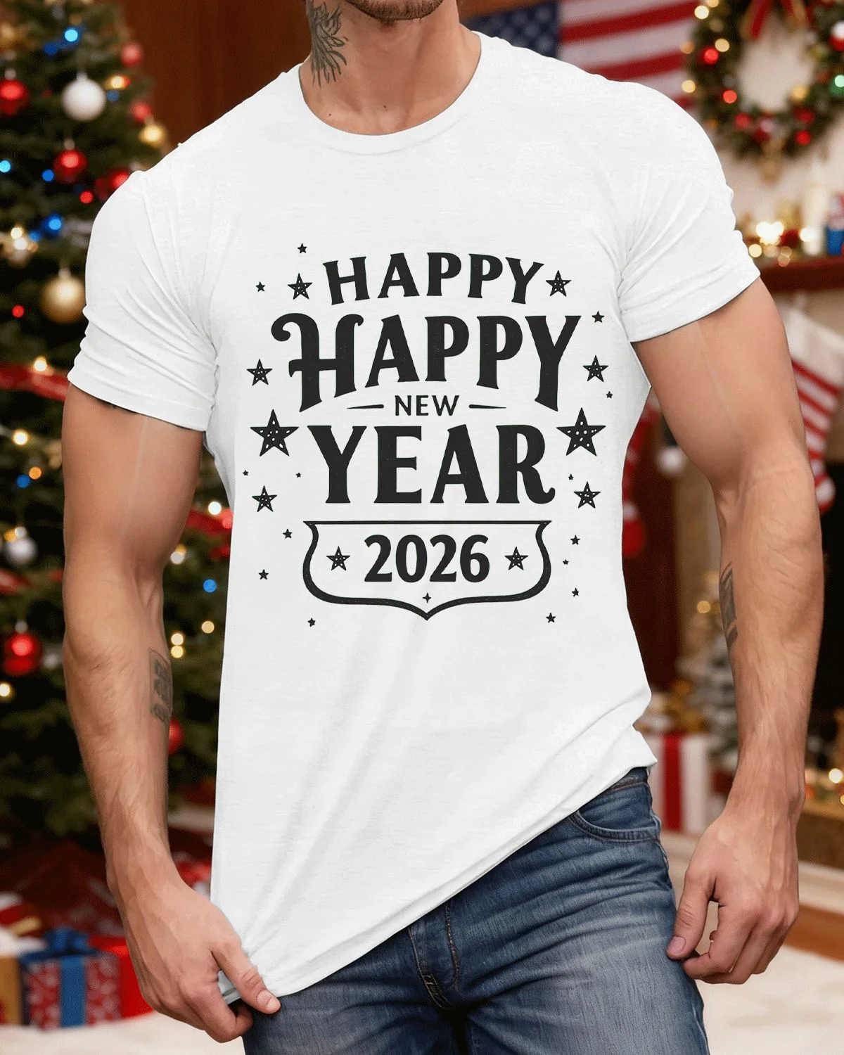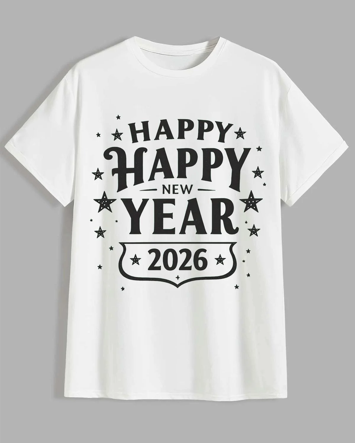 2026 New Year Family Cruise Beach Scene Summer Cotton Graphic T Shirt - Casual Vintage, Short Sleeve, Soft Fabric, Comfortable Fit