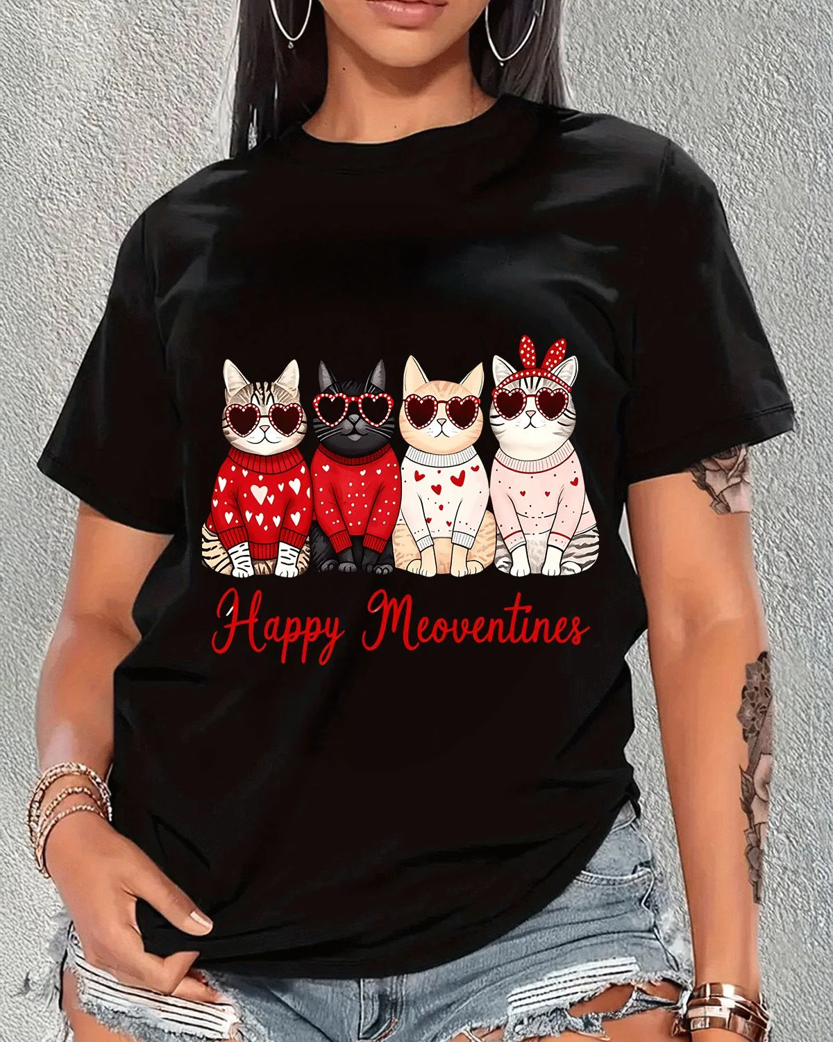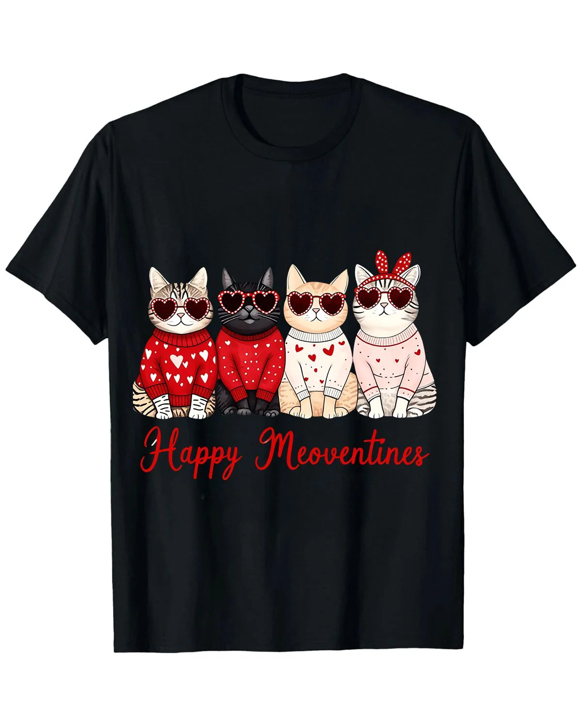 Happy Meoventines Cats Summer Cotton Graphic T Shirt - Cute Vintage,Short Sleeve,Soft Fabric,Comfortable Fit
