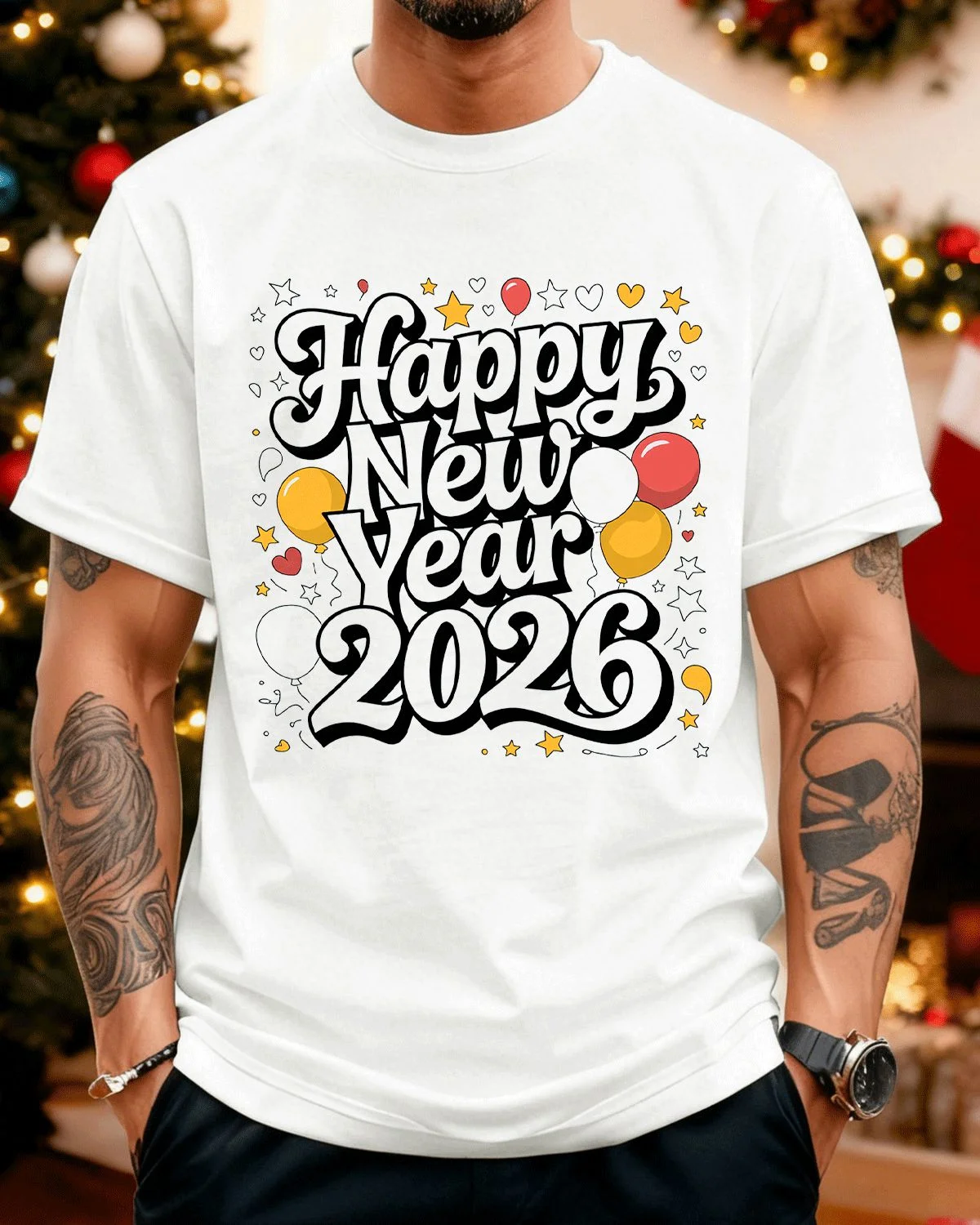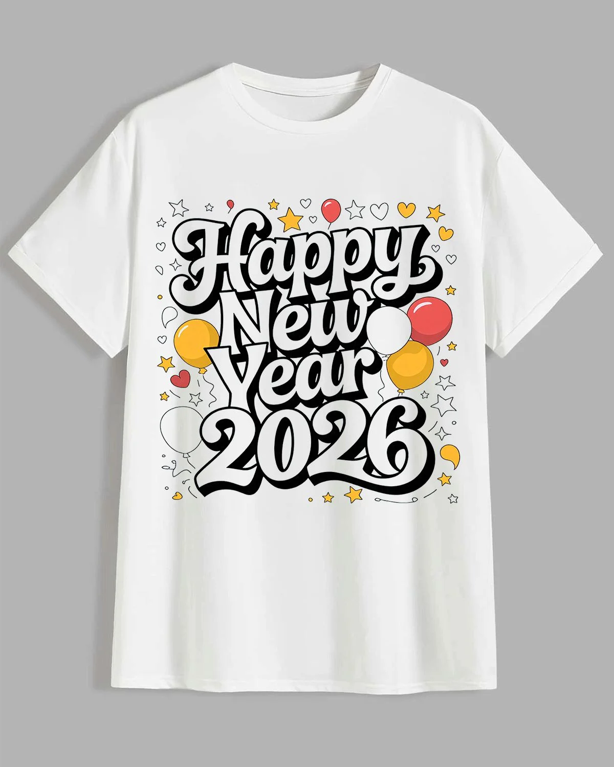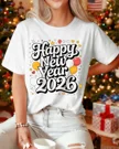 Happy 2026 New Year Stars Summer Cotton Graphic T Shirt - Casual Vintage, Short Sleeve, Soft Fabric, Comfortable Fit