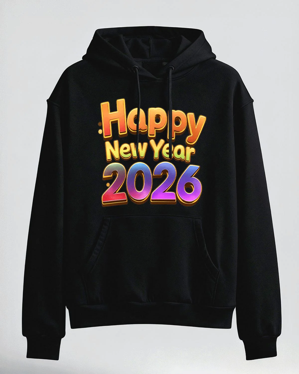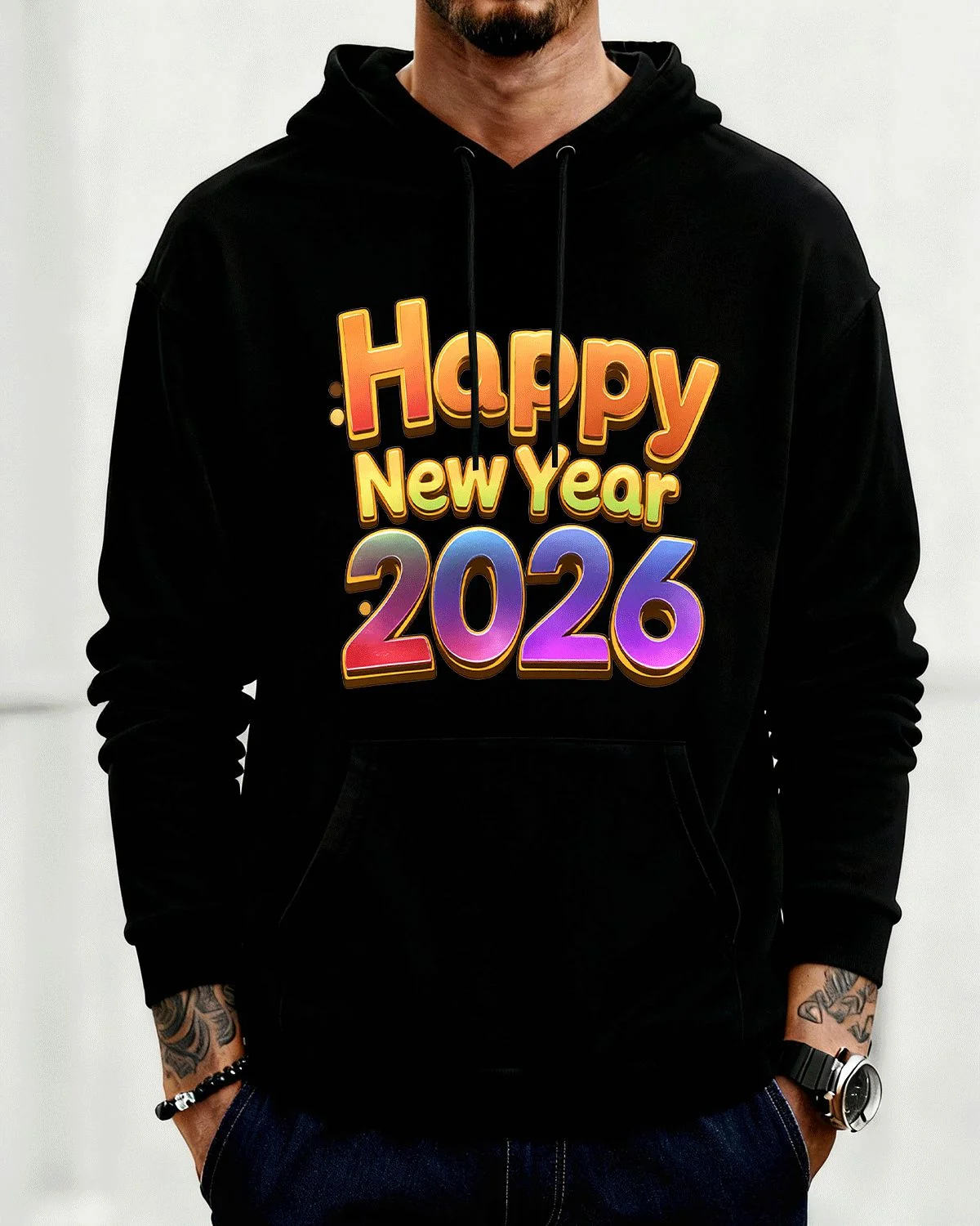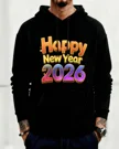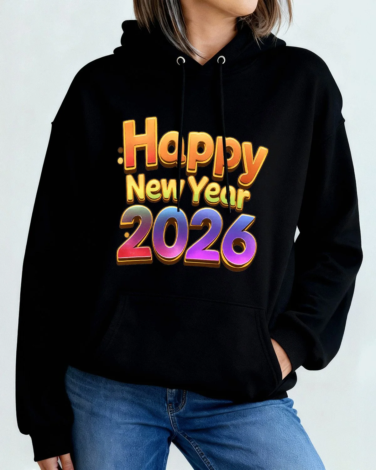 Happy New Year 2026 Colorful Text Cozy Graphic Hoodie for Men and Women - Casual Modern, Long Sleeve, Soft Fabric, Comfortable Fit