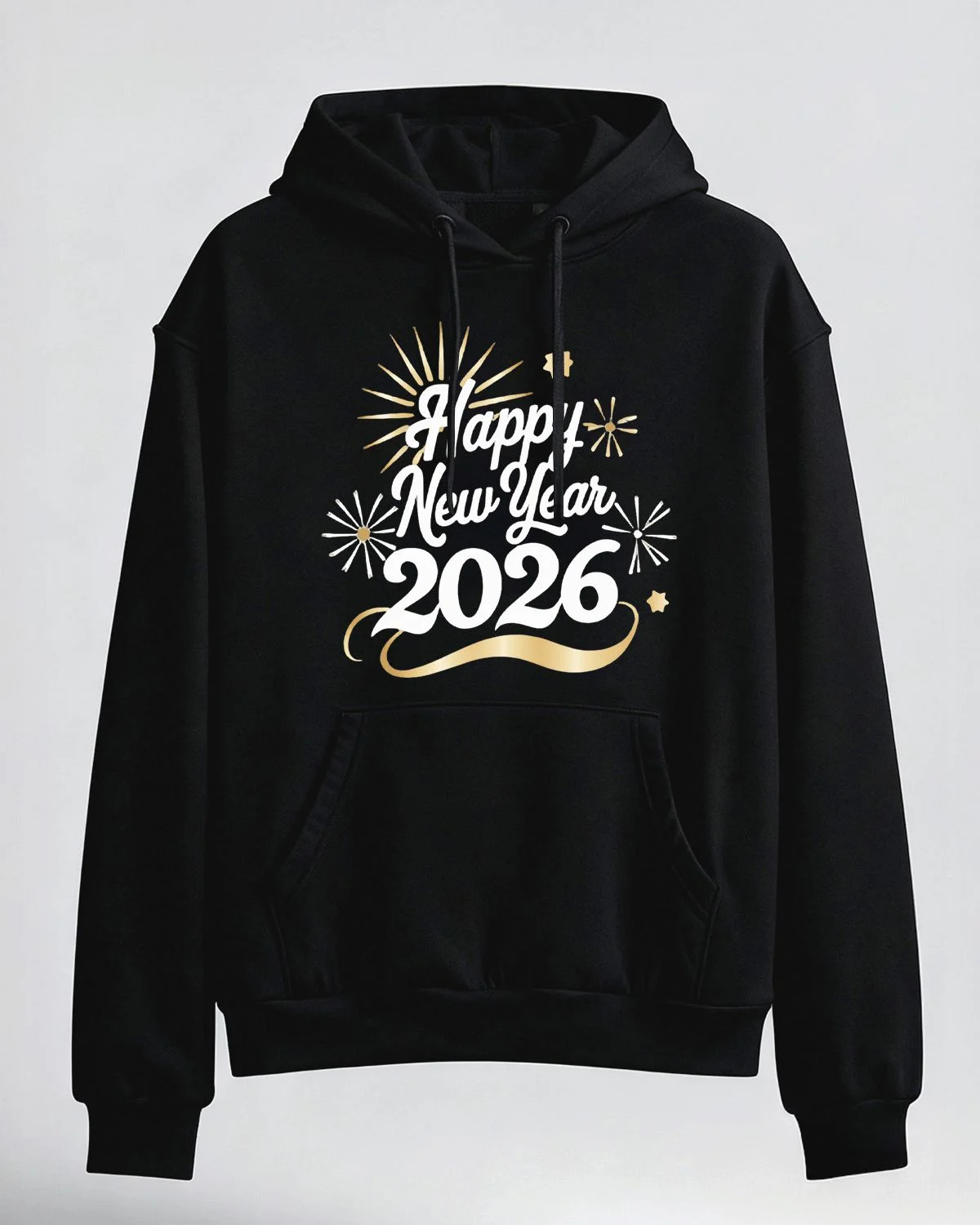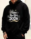 Happy New Year 2026 Fireworks Cozy Graphic Hoodie for Men and Women - Casual Vintage, Long Sleeve, Soft Fabric, Comfortable Fit