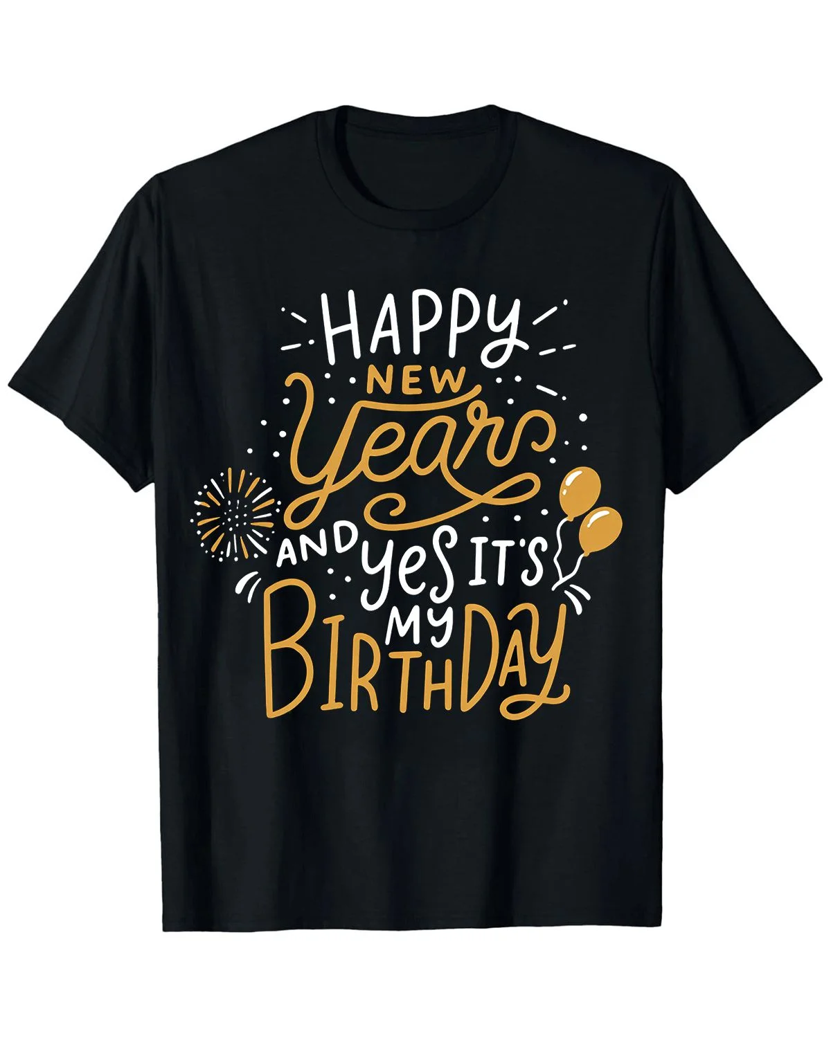 Happy New Year Birthday Celebration Summer Cotton Graphic T Shirt - Casual Graphic, Short Sleeve, Soft Fabric, Comfortable Fit
