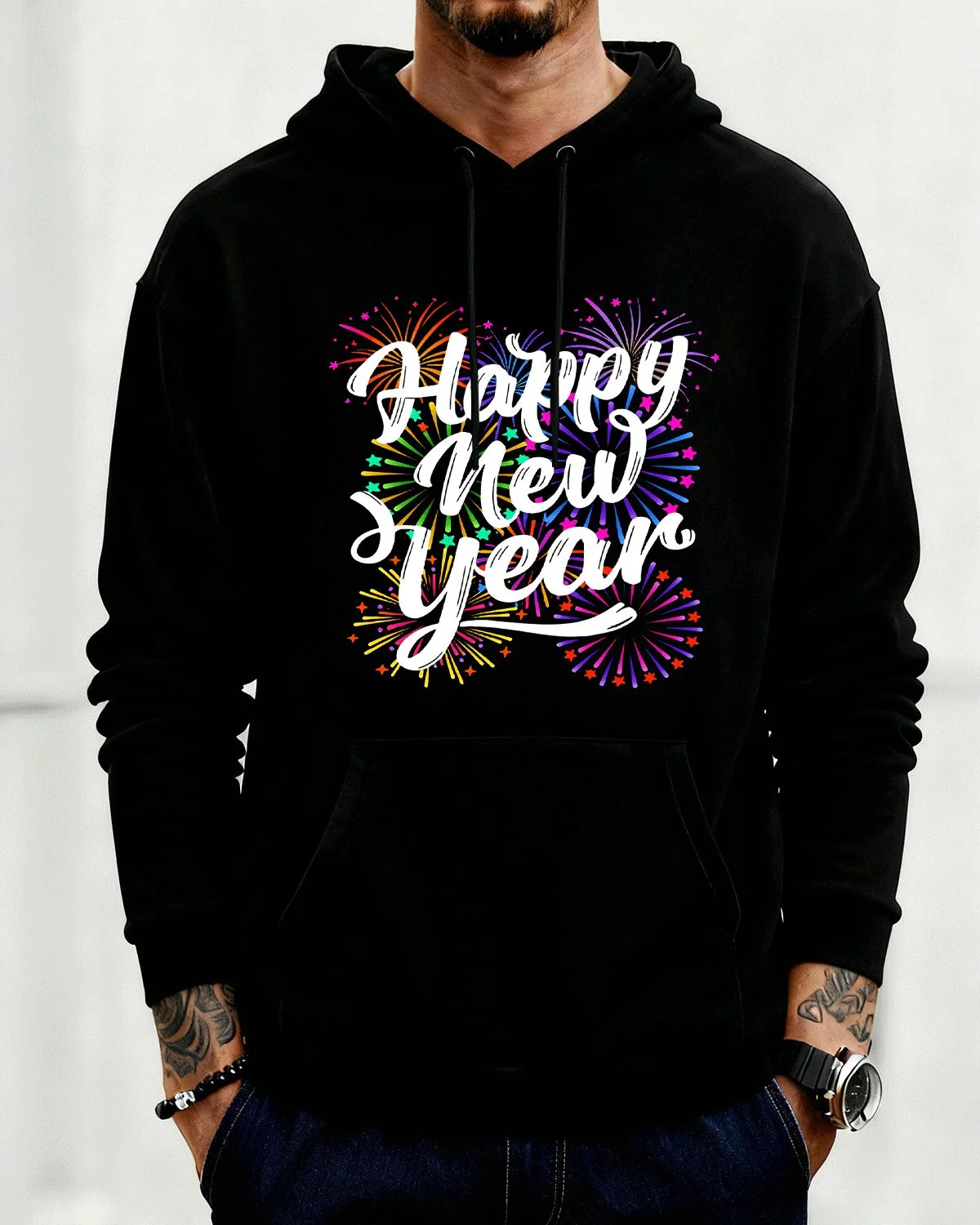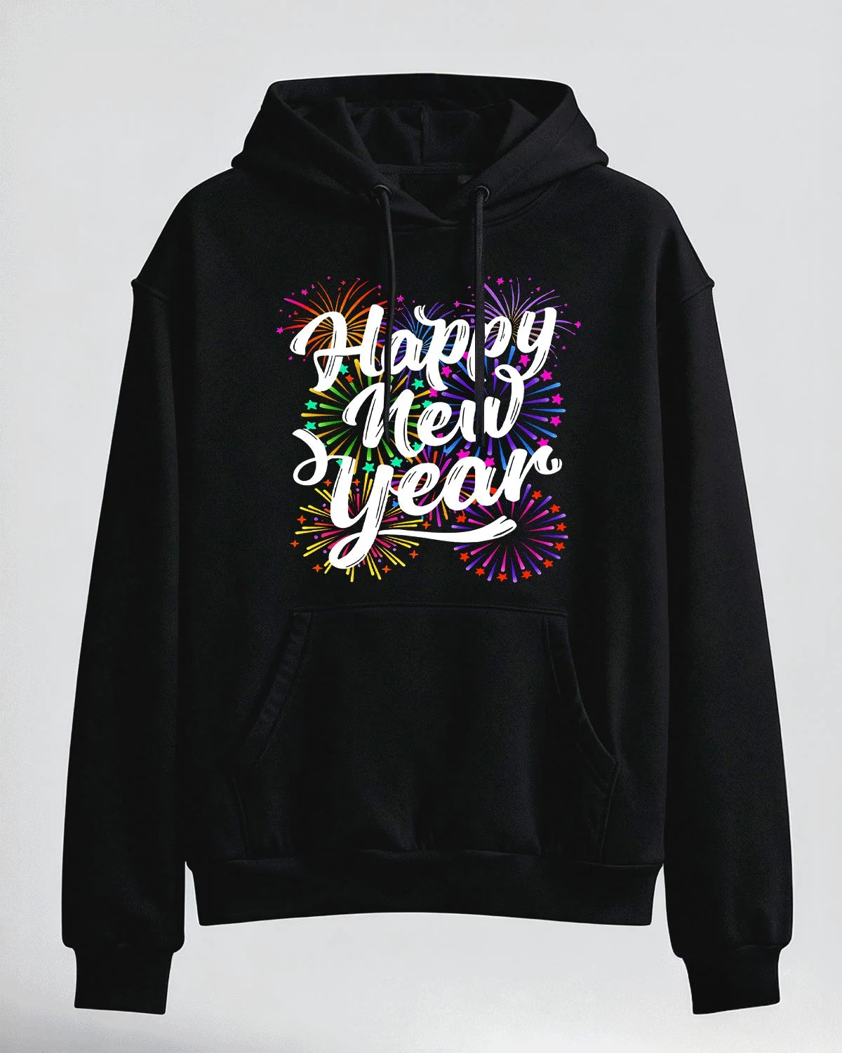 Happy New Year Colorful Fireworks Cozy Graphic Hoodie for Men and Women - Casual Graphic, Long Sleeve, Soft Fabric, Comfortable Fit