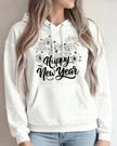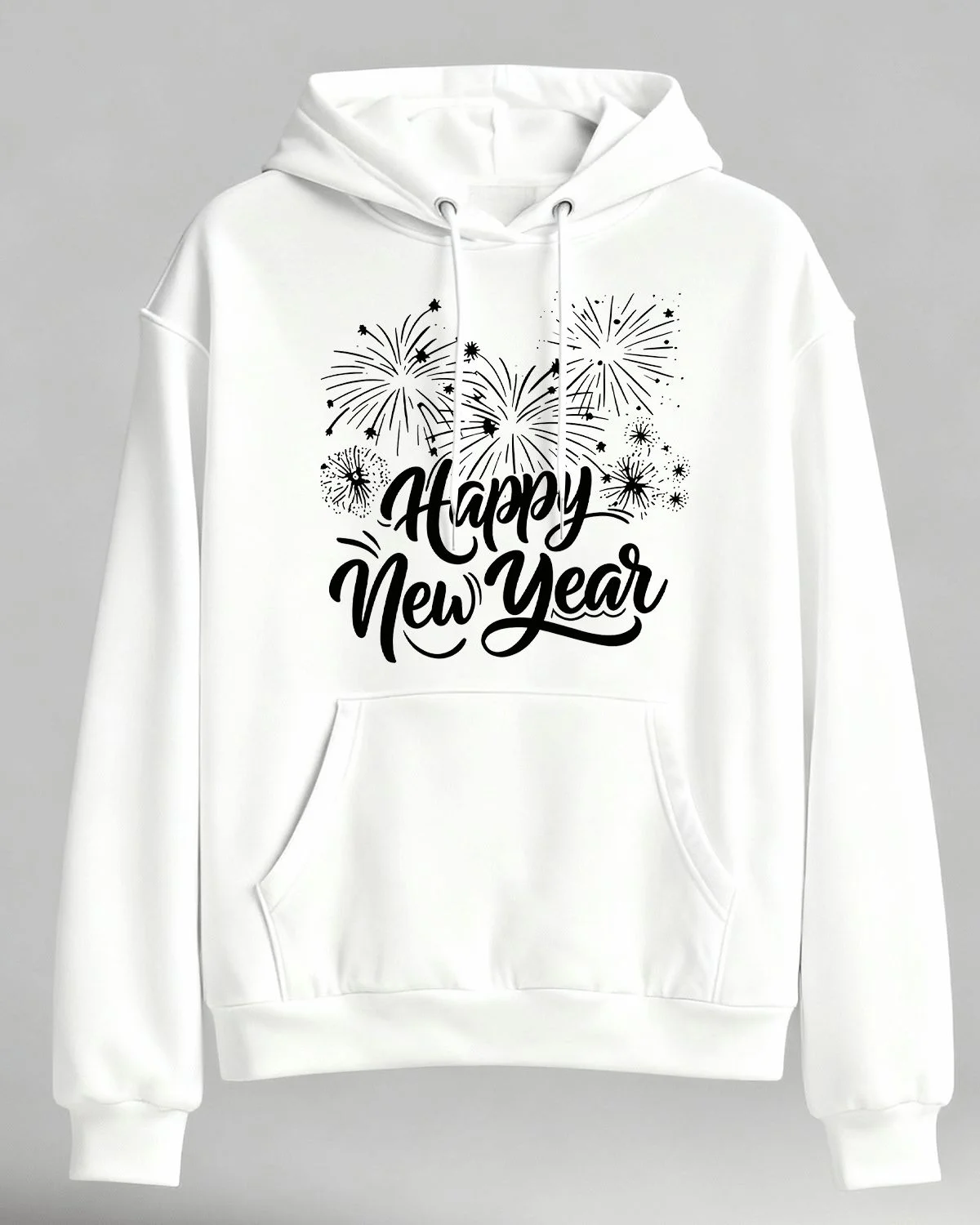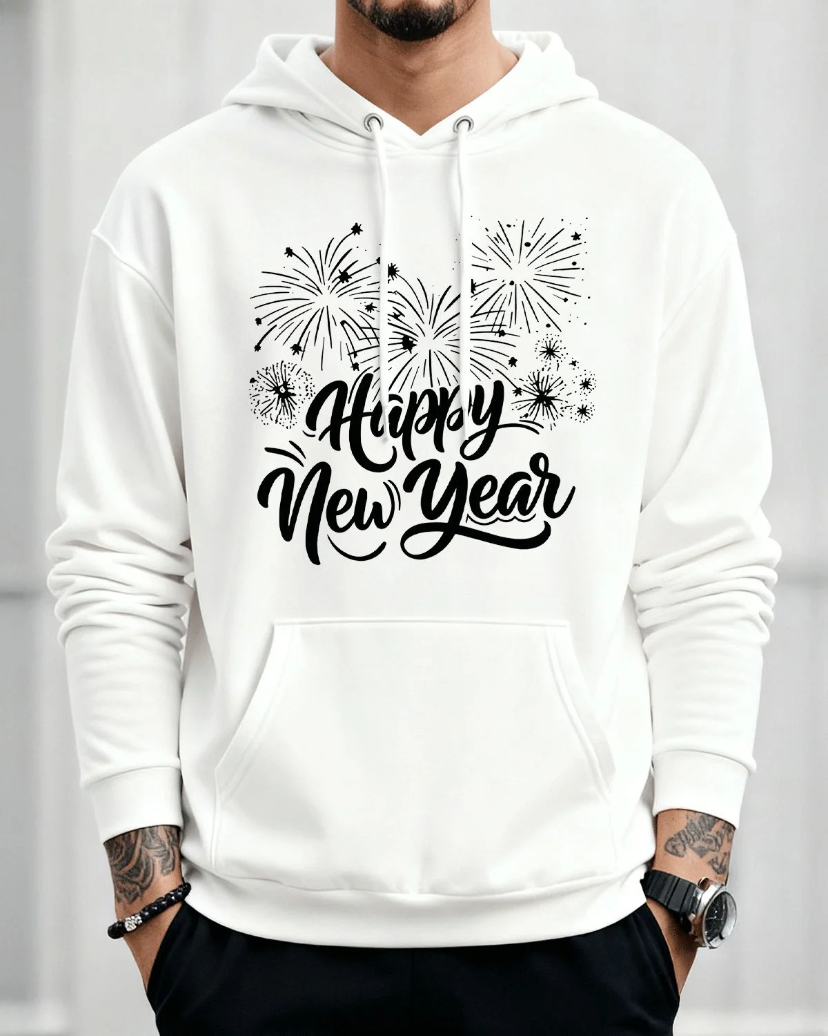 Happy New Year Fireworks Celebration Cozy Graphic Hoodie for Men and Women - Casual Vintage, Long Sleeve, Soft Fabric, Comfortable Fit