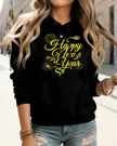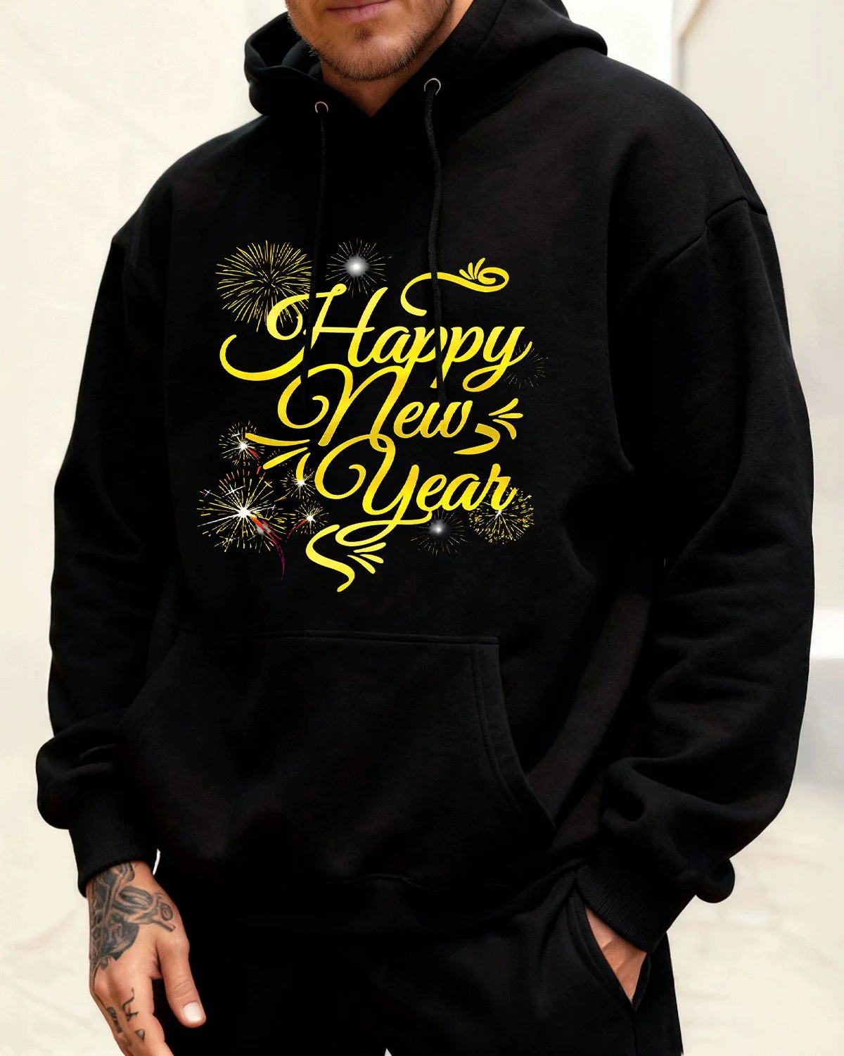 Happy New Year Fireworks Graphic Cozy Graphic Hoodie for Men and Women - Casual Festive, Long Sleeve, Soft Fabric, Comfortable Fit
