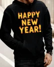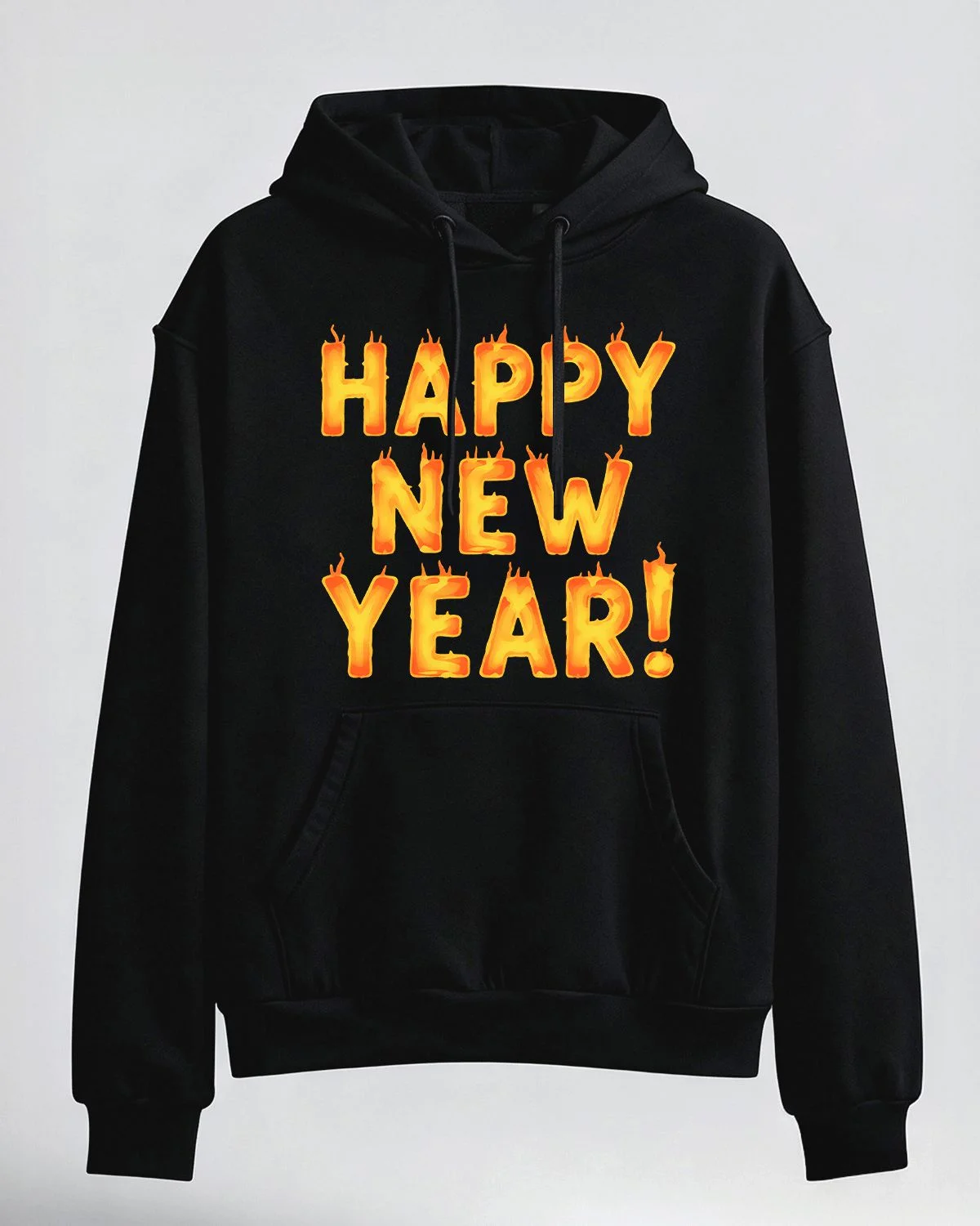 Happy New Year Flaming Letters Cozy Graphic Hoodie for Men and Women - Casual Graphic, Long Sleeve, Soft Fabric, Comfortable Fit
