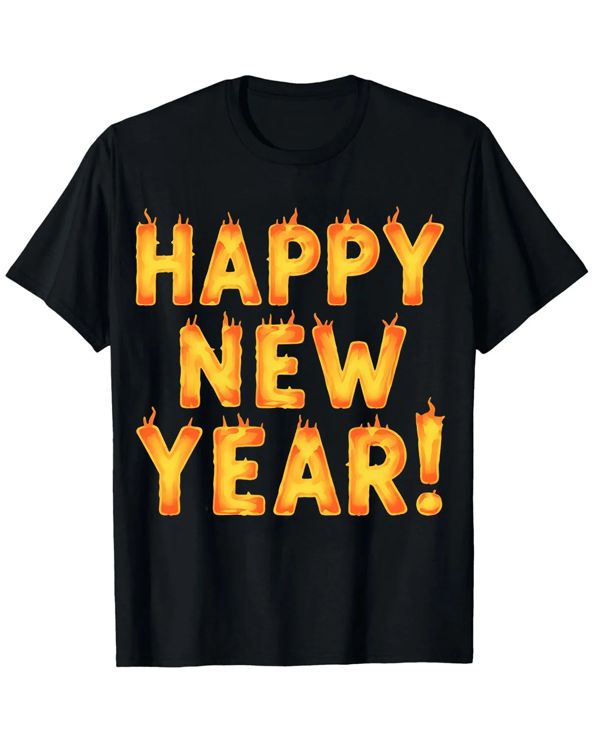 Happy New Year Flaming Letters Summer Cotton Graphic T Shirt - Casual Graphic, Short Sleeve, Soft Fabric, Comfortable Fit