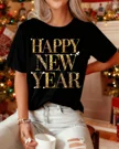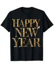 Happy New Year Gold Glitter Lettering Summer Cotton Graphic T Shirt - Classic Vintage, Short Sleeve, Soft Fabric, Comfortable Fit