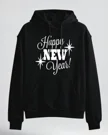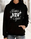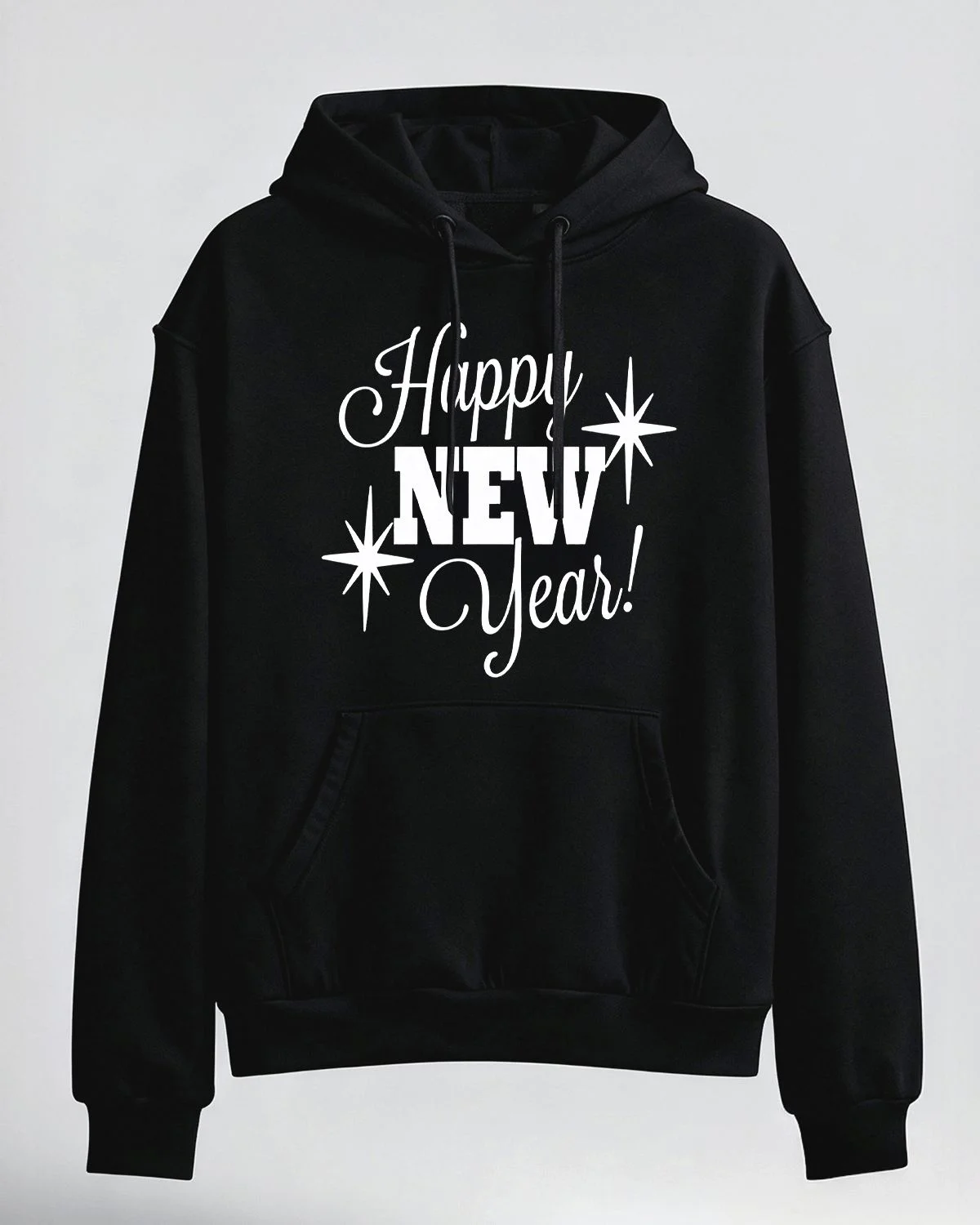 Happy New Year Greeting with Stars Cozy Graphic Hoodie for Men and Women - Casual Vintage, Long Sleeve, Soft Fabric, Comfortable Fit