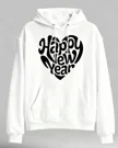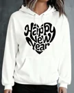 Happy New Year Heart Typography Cozy Graphic Hoodie for Men and Women - Casual Artistic, Long Sleeve, Soft Fabric, Comfortable Fit