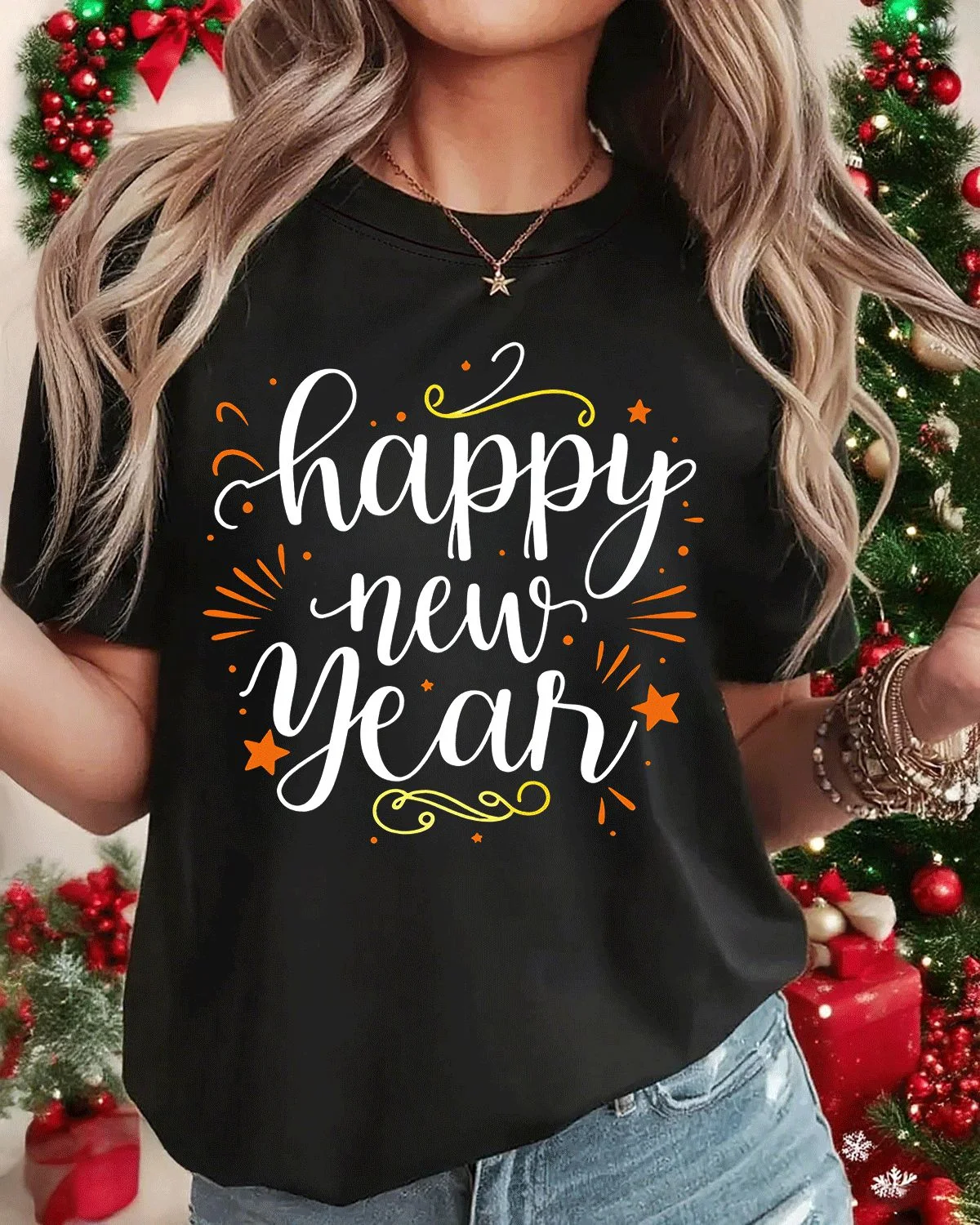 Christmas Chickens and Reindeer in Santa Hats Summer Cotton Graphic T Shirt - Funny Retro, Short Sleeve, Soft Fabric, Comfortable Fit