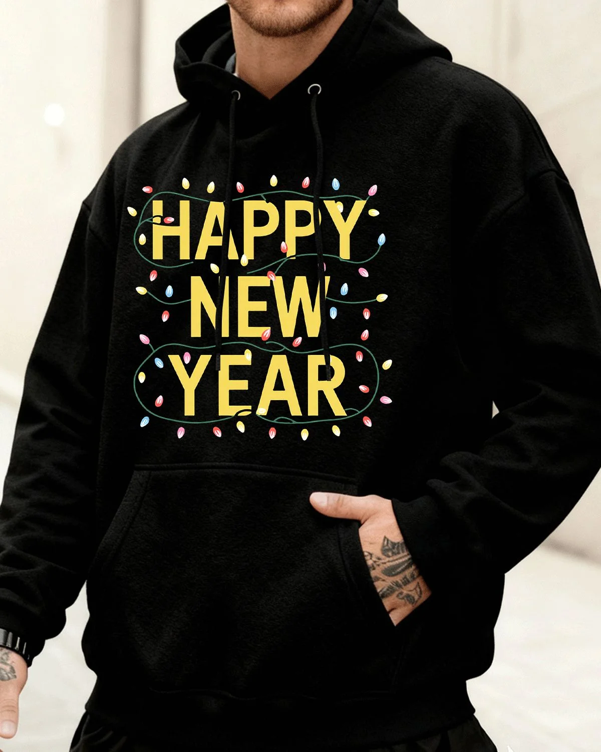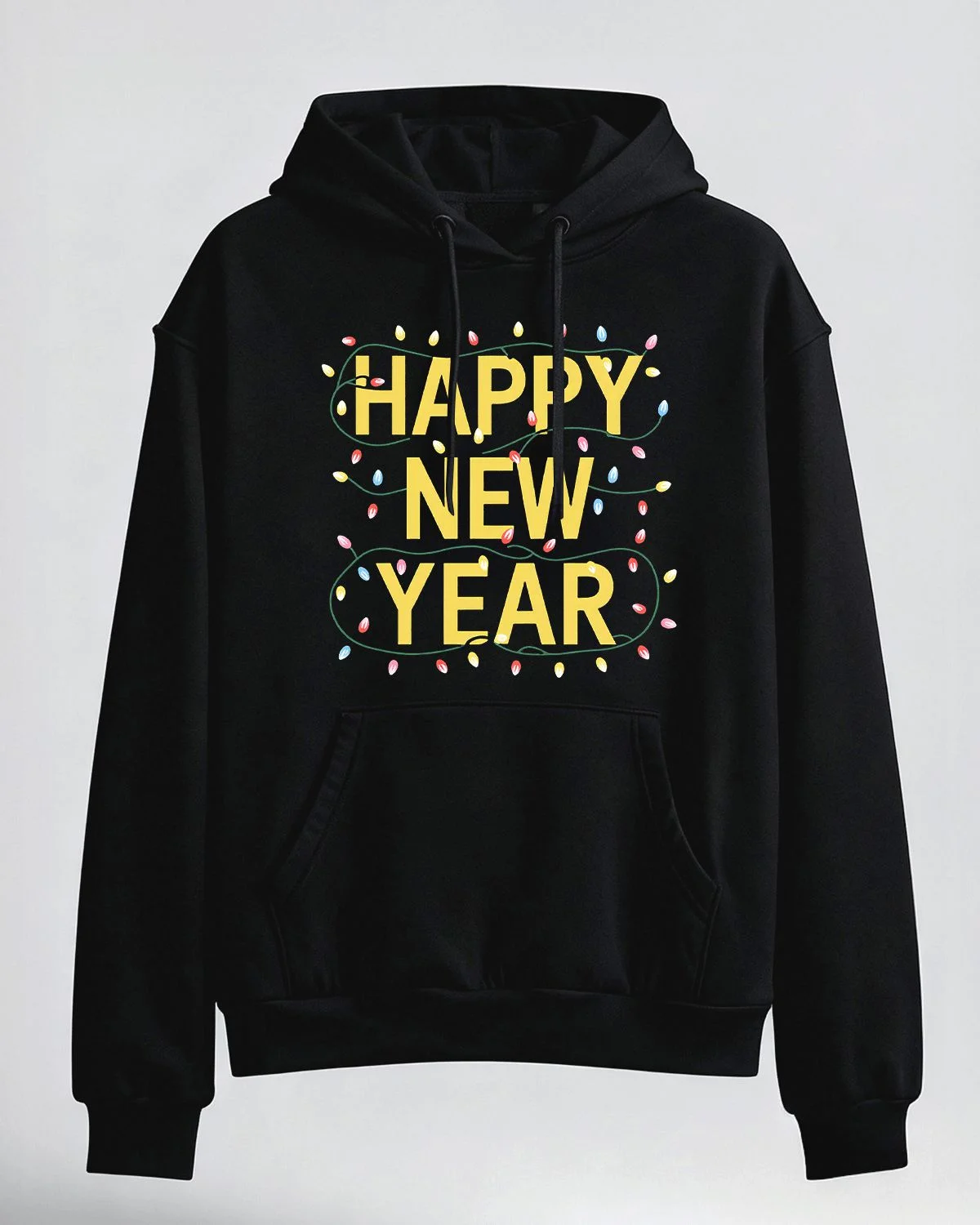 Happy New Year Lights Cozy Graphic Hoodie for Men and Women - Casual Modern, Long Sleeve, Soft Fabric, Comfortable Fit