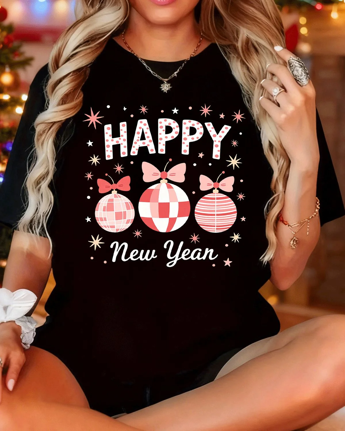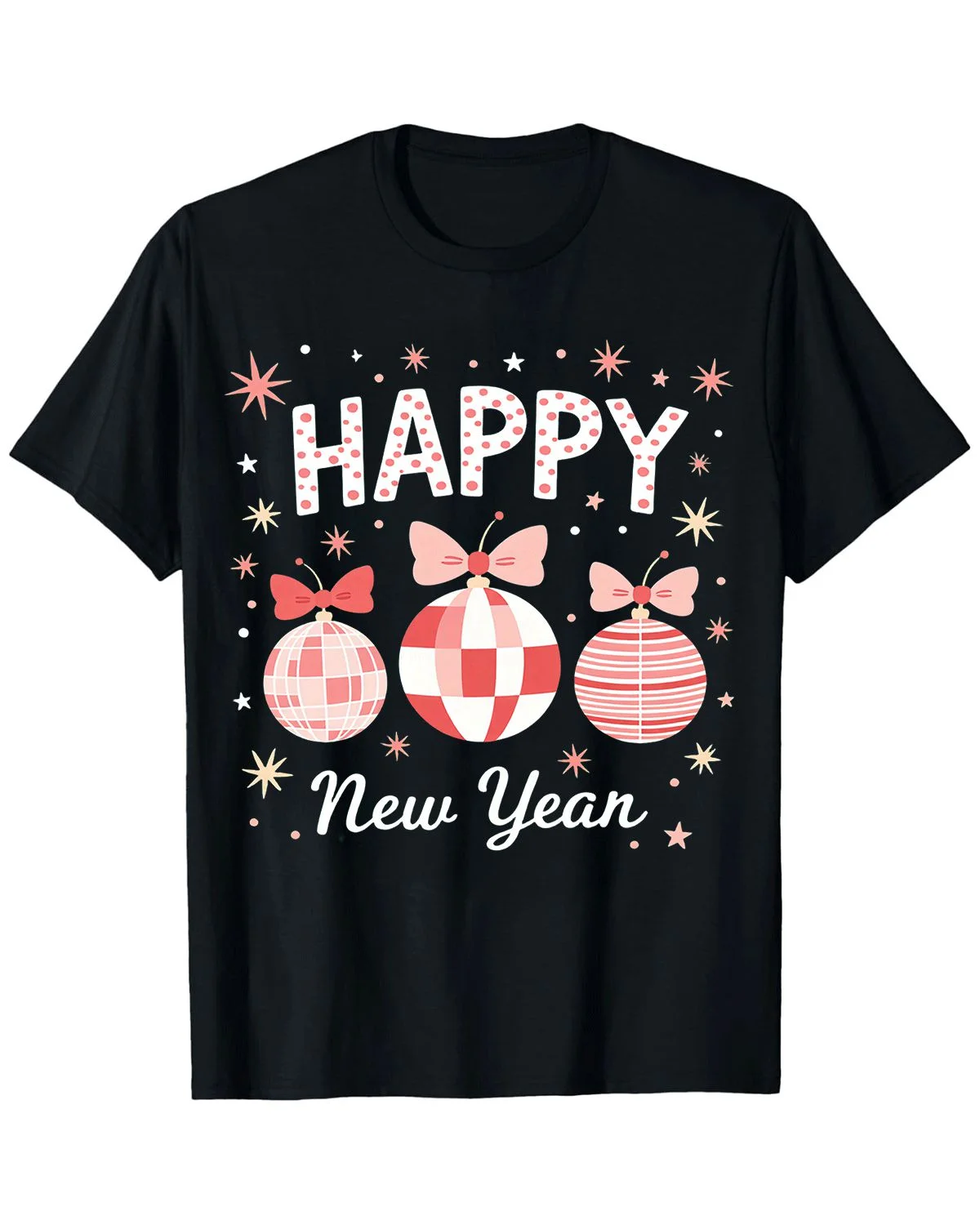 Happy New Year 2026 Fireworks Gold Ribbon Summer Cotton Graphic T Shirt - Casual Vintage, Short Sleeve, Soft Fabric, Comfortable Fit
