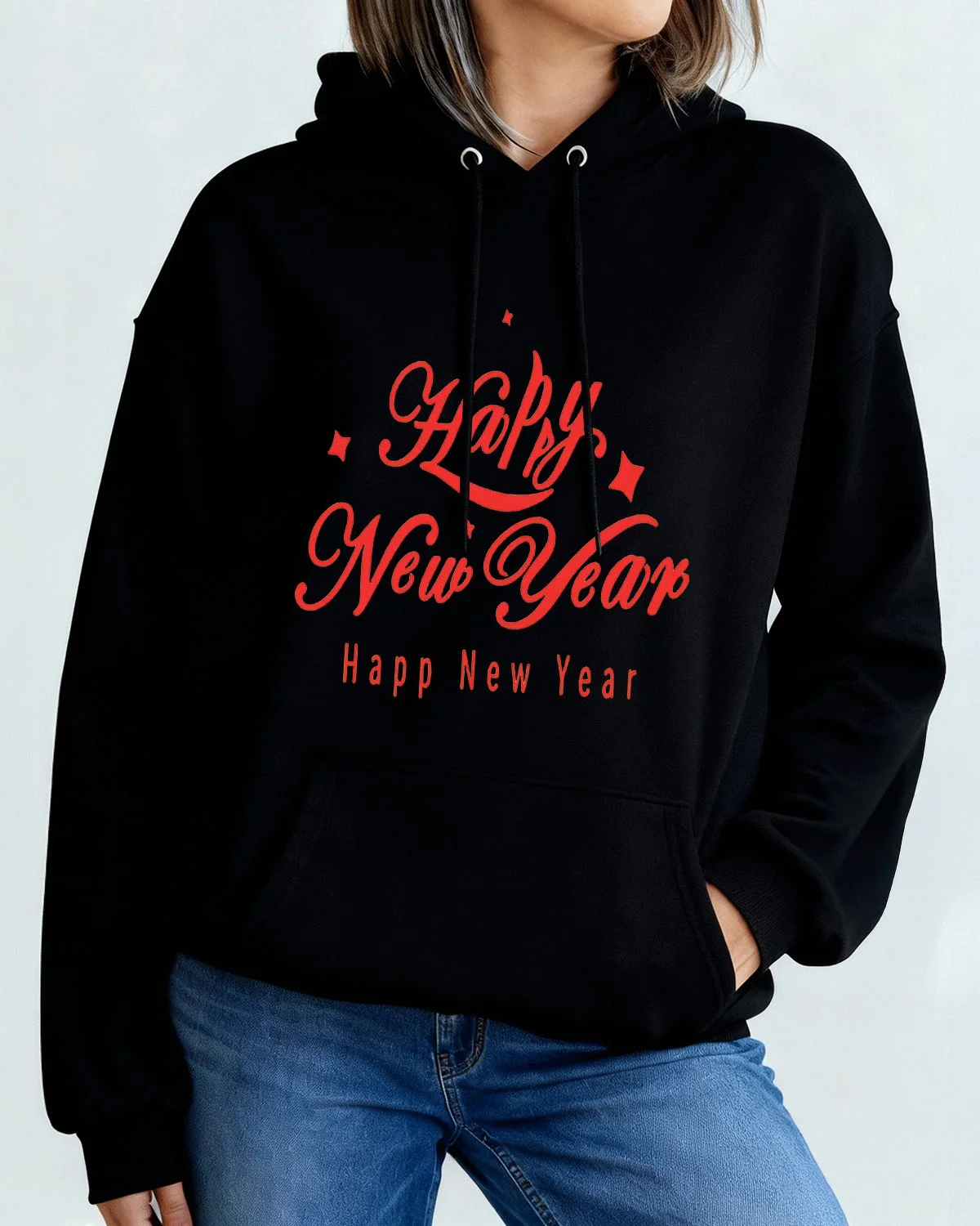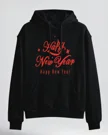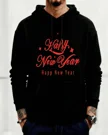 Happy New Year Red Lettering Cozy Graphic Hoodie for Men and Women - Casual Vintage, Long Sleeve, Soft Fabric, Comfortable Fit