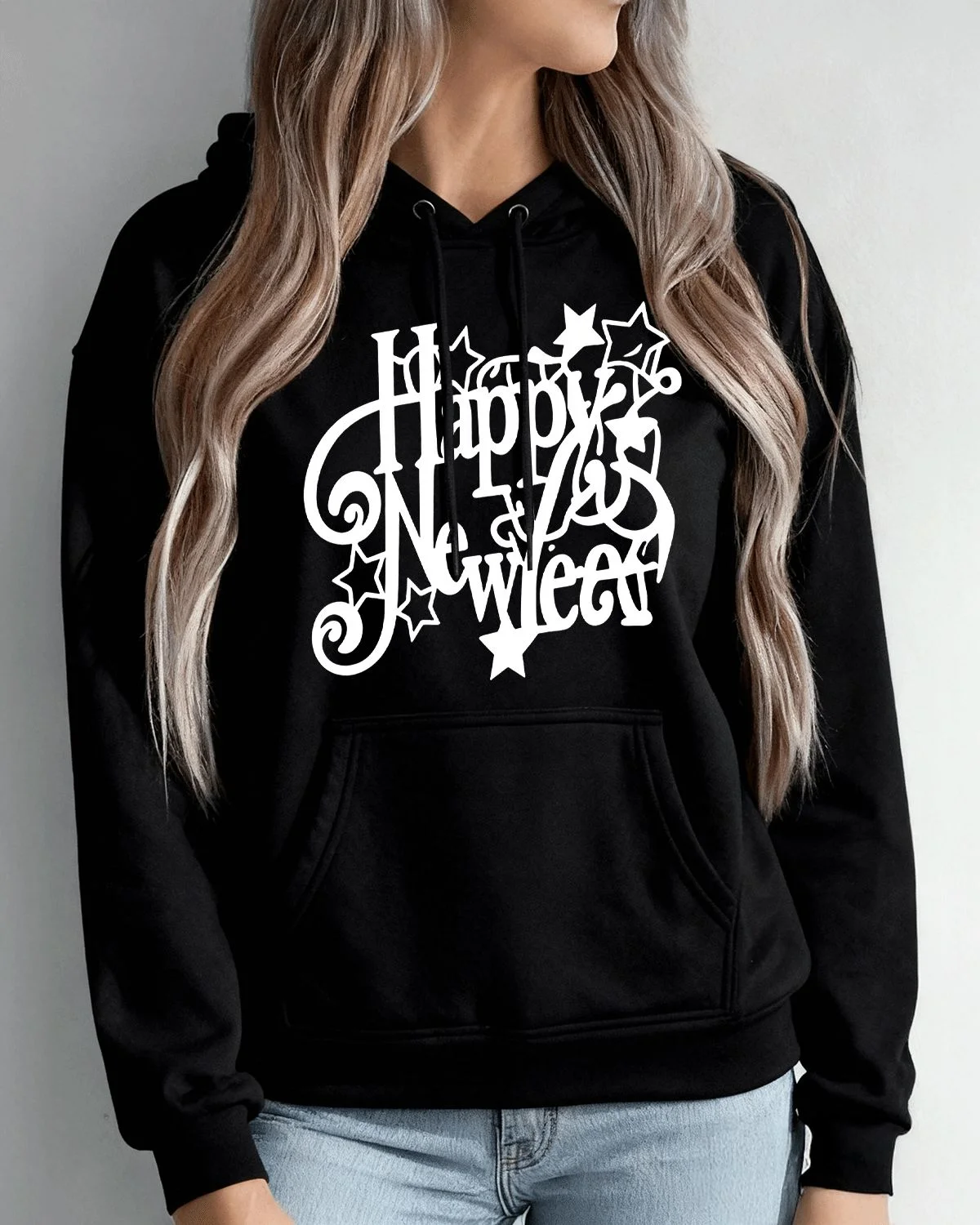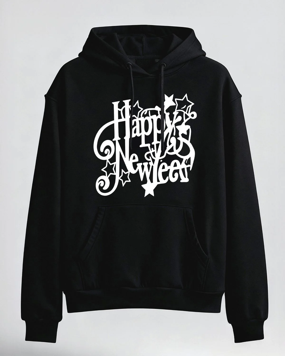 Happy New Year Stars Design Cozy Graphic Hoodie for Men and Women - Casual Retro, Long Sleeve, Soft Fabric, Comfortable Fit