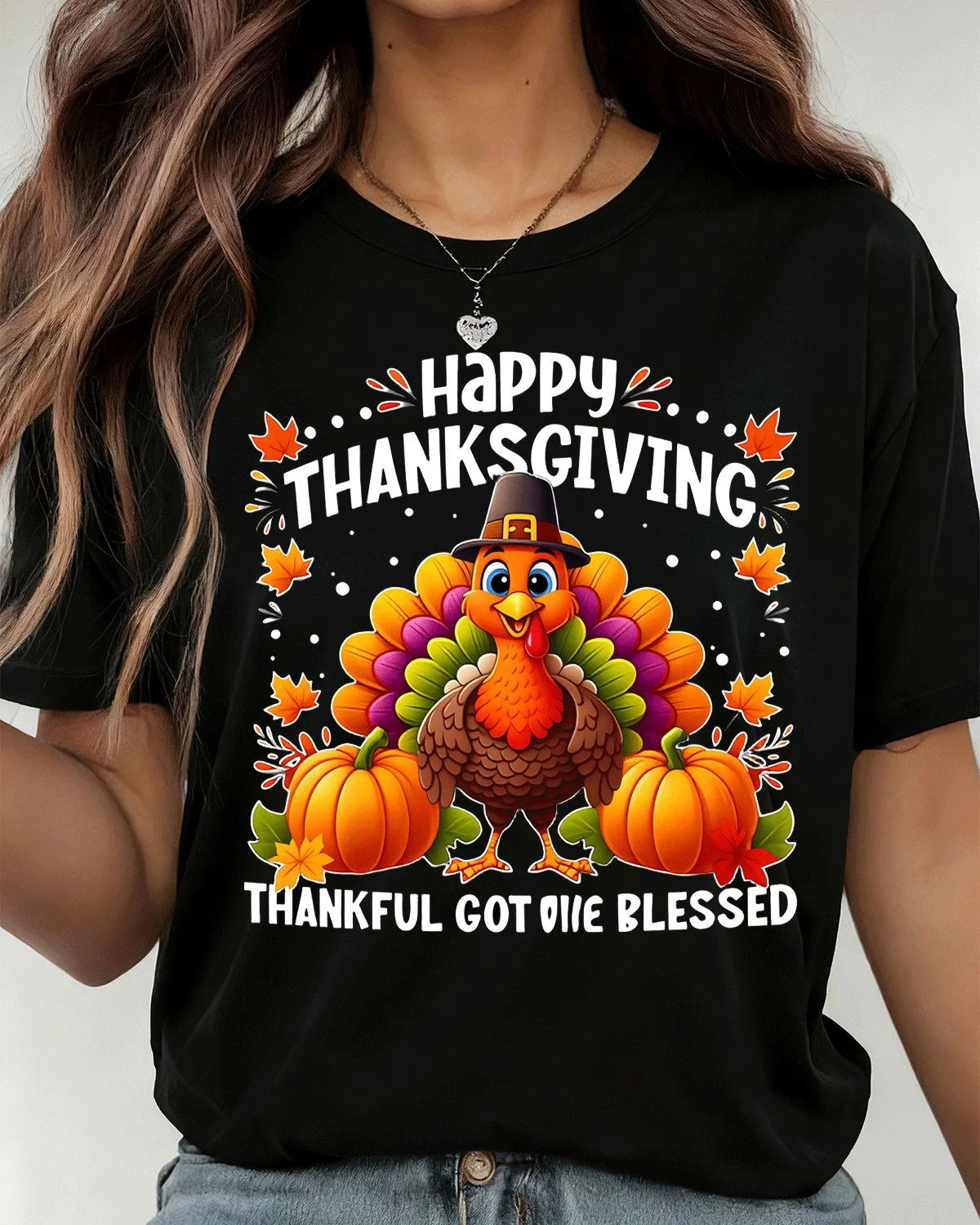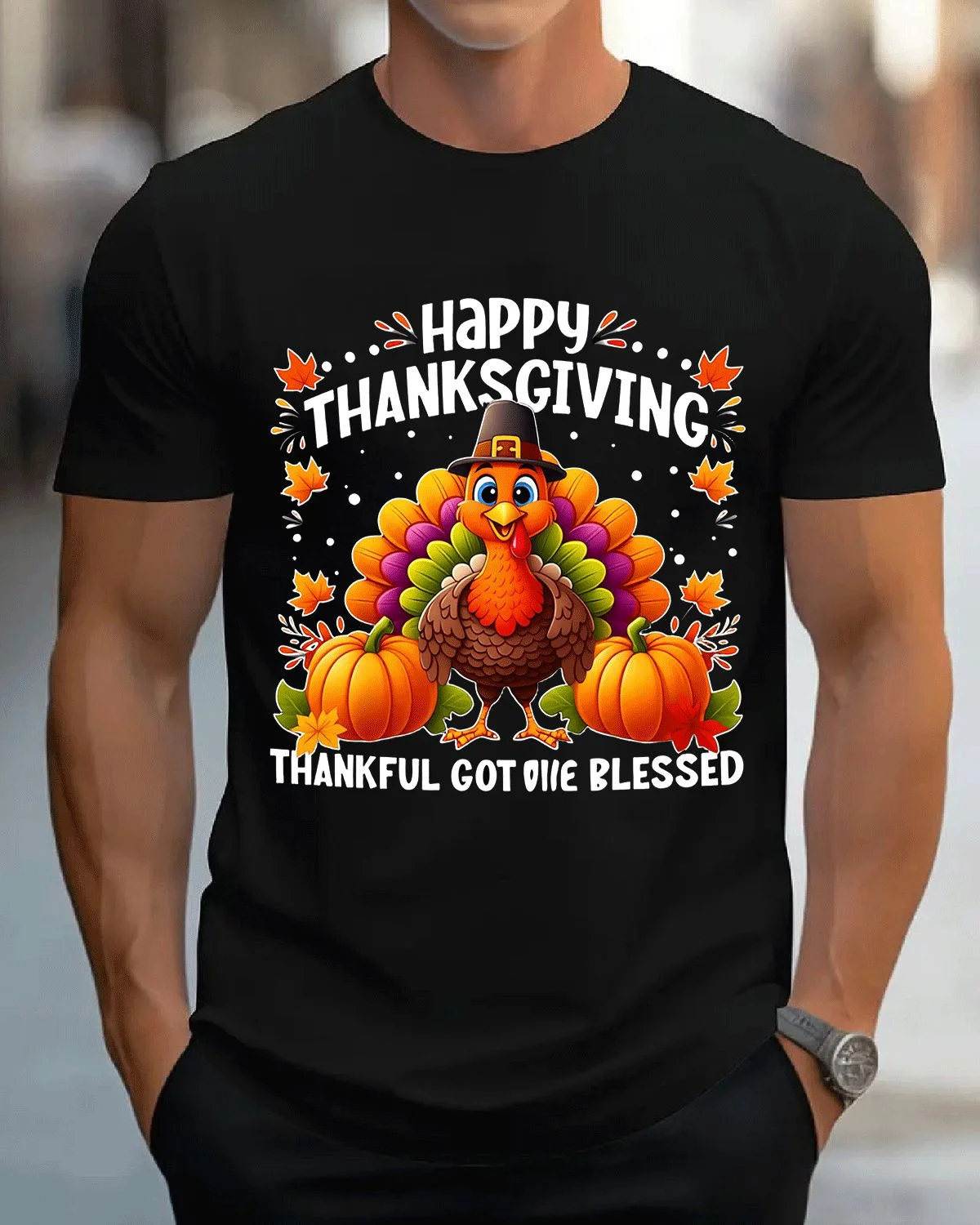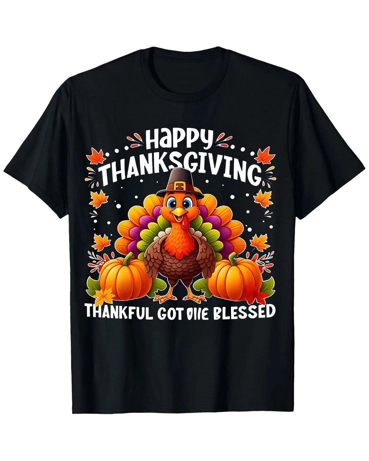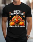 Happy Thanksgiving Thankful Got Me Blessed Summer Cotton Graphic T Shirt-Casual Vintage,Short Sleeve,Soft Fabric,Comfortable Fit