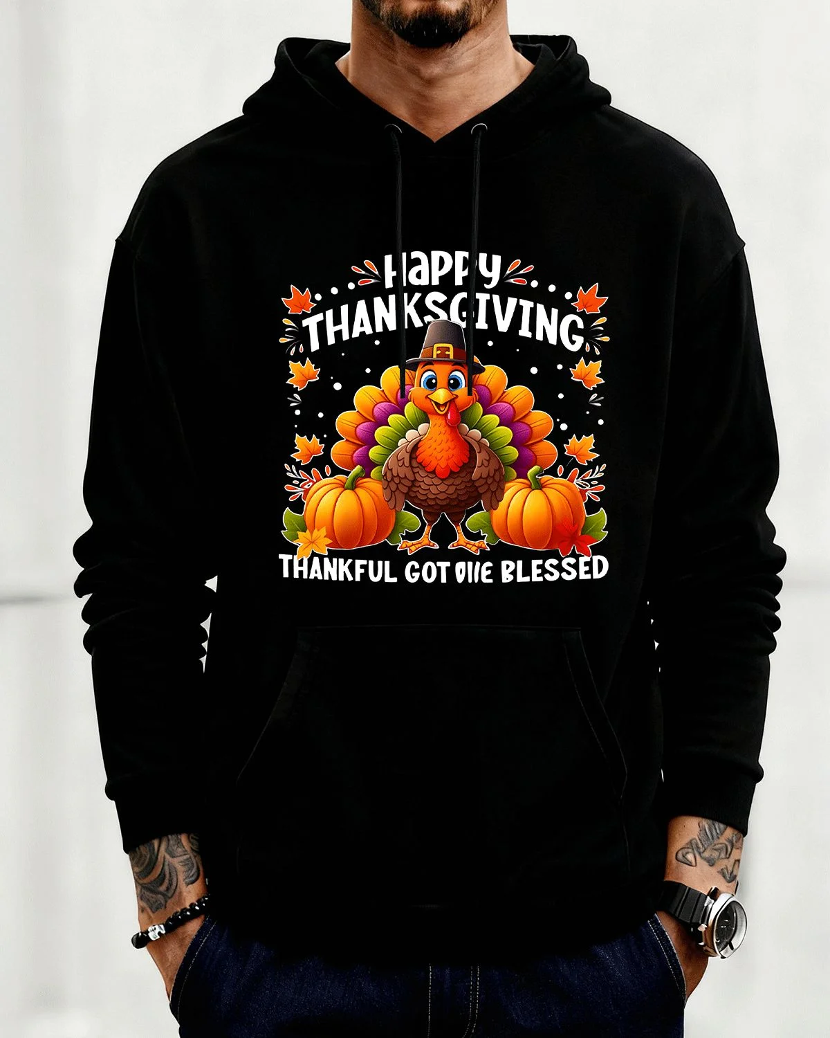 Happy Thanksgiving Thankful Got Me Blessed Summer Cozy Graphic Hoodie-Casual Vintage,Long Sleeve,Soft Fabric,Comfortable Fit
