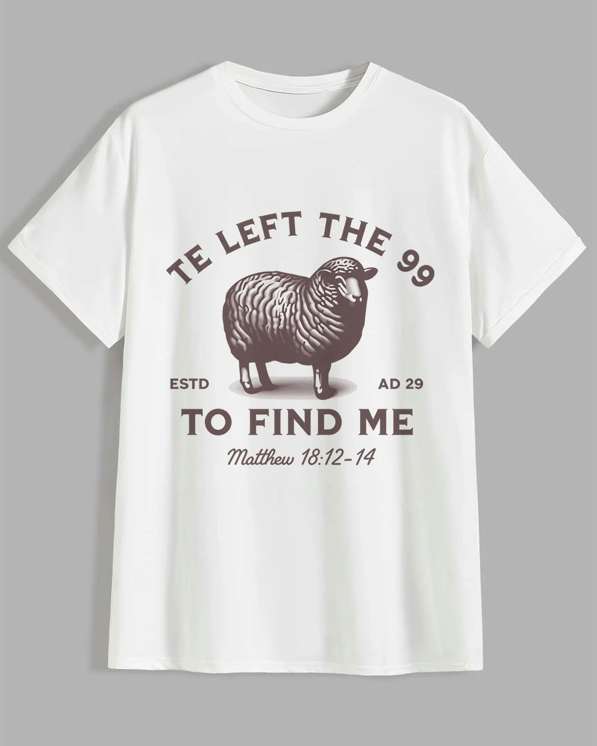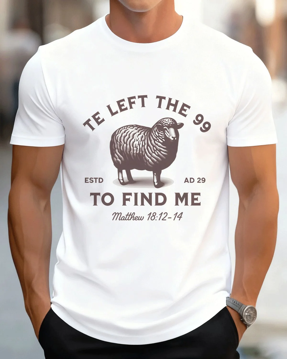 He Left the 99 To Find Me Matthew 1812-14 Summer Cotton Graphic T Shirt - Casual Vintage,Short Sleeve,Soft Fabric,Comfortable Fit