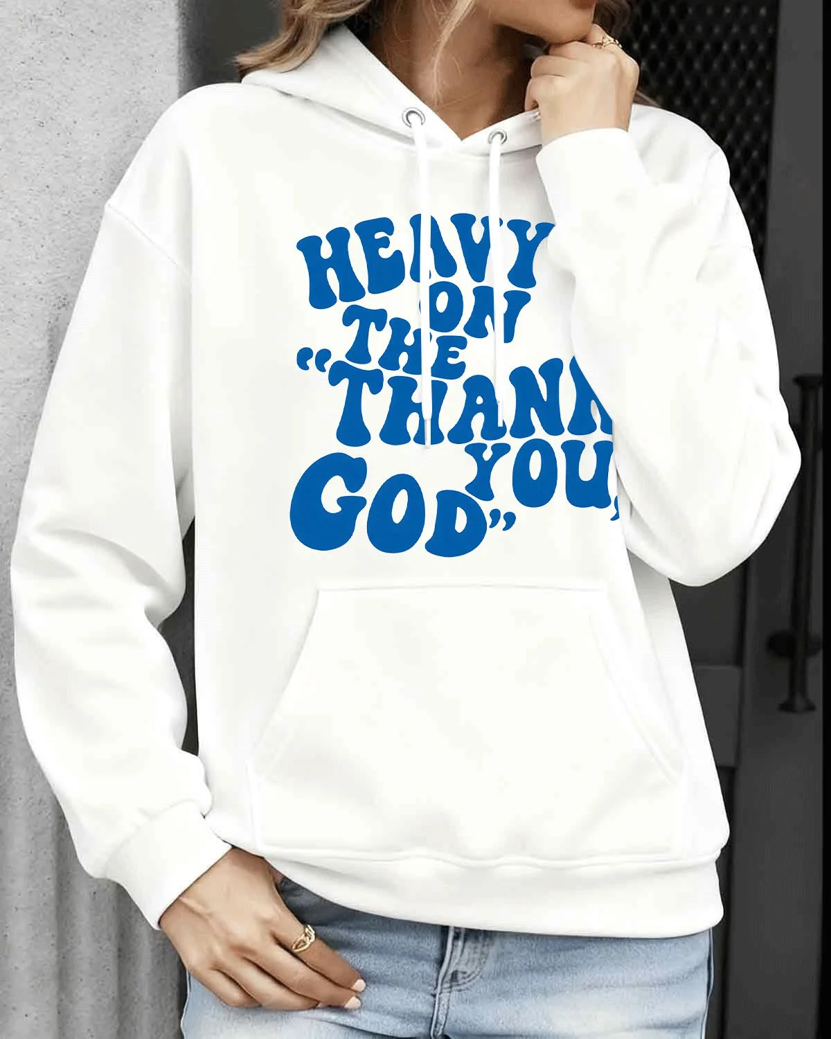 Heavy On The Thank You God Summer Cozy Graphic Hoodie - Casual Vintage, Long Sleeve, Soft Fabric, Comfortable Fit