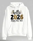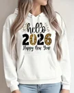 Hello 2026 Happy New Year Glitter Cozy Graphic Hoodie for Men and Women - Casual Modern, Long Sleeve, Soft Fabric, Comfortable Fit