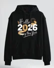 Hello 2026 Happy New Year Ribbon and Fireworks Cozy Graphic Hoodie for Men and Women - Casual Vintage, Long Sleeve, Soft Fabric, Comfortable Fit