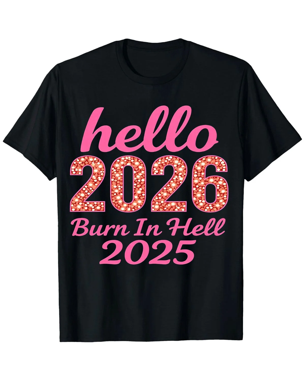 Hello 2026 New Year Glitter Text Summer Cotton Graphic T Shirt - Casual Trendy, Short Sleeve, Soft Fabric, Comfortable Fit