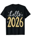 Hello 2026 New Year Gold Stars Summer Cotton Graphic T Shirt - Casual Modern, Short Sleeve, Soft Fabric, Comfortable Fit