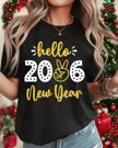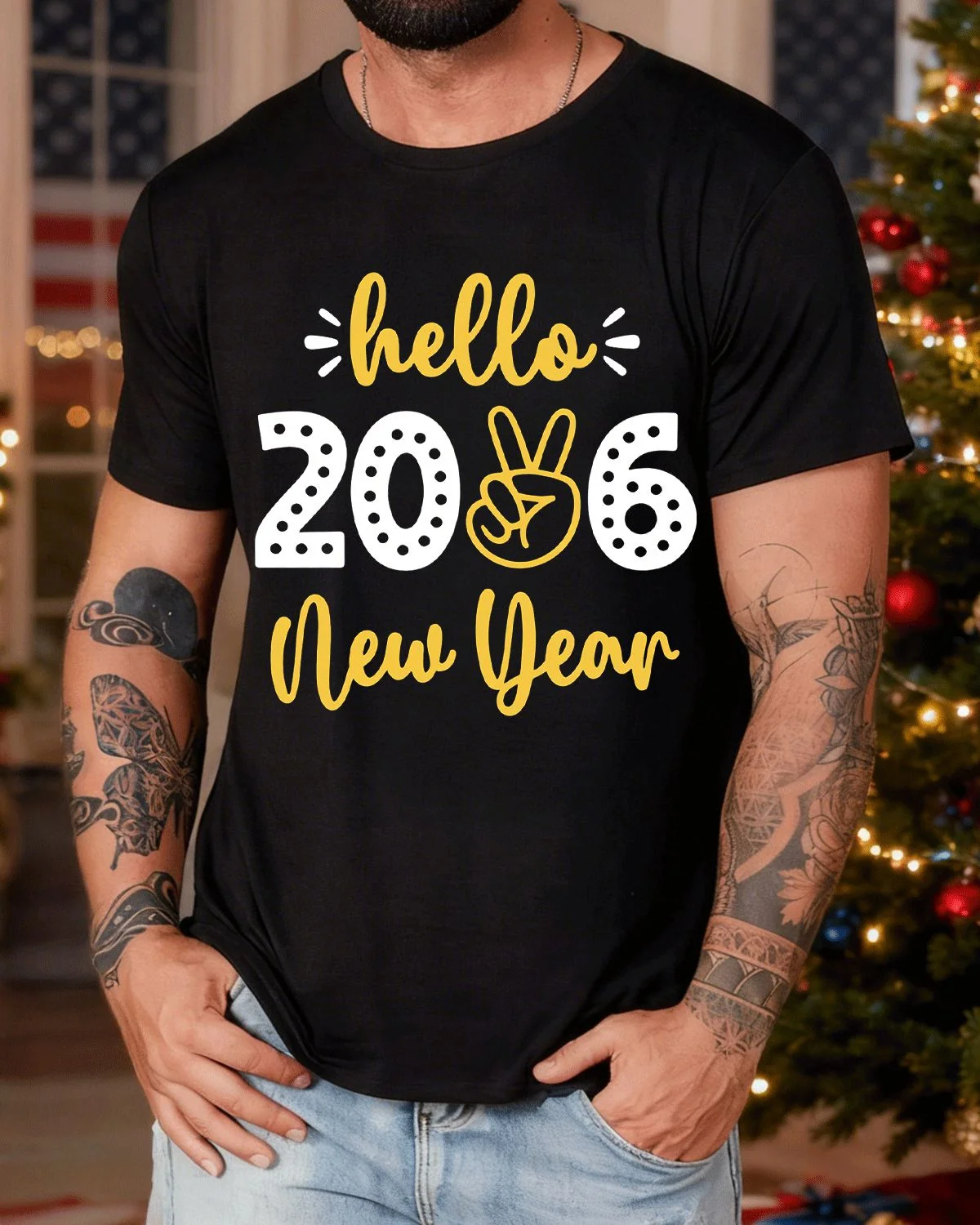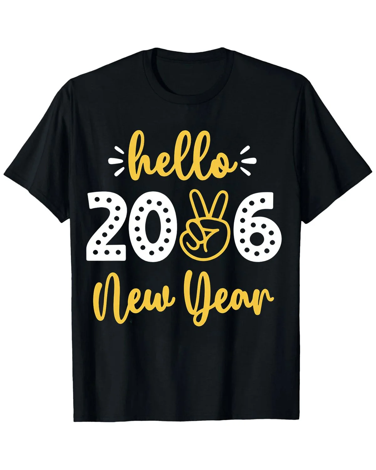 Hello 2026 New Year Peace Sign Summer Cotton Graphic T Shirt - Casual Retro, Short Sleeve, Soft Fabric, Comfortable Fit