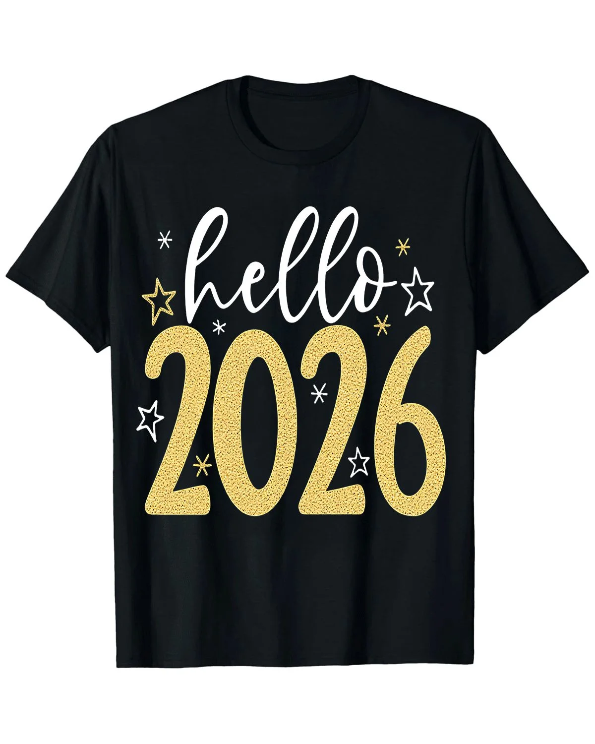 Hello 2026 New Year Stars Summer Cotton Graphic T Shirt - Casual Modern, Short Sleeve, Soft Fabric, Comfortable Fit
