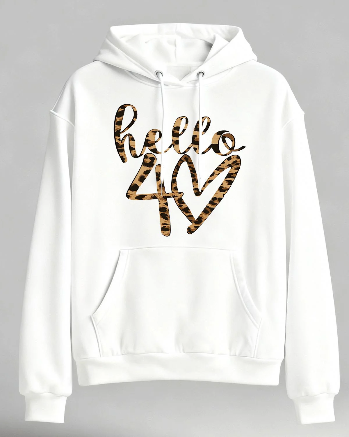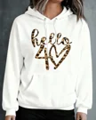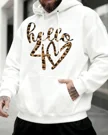 Hello 40 Birthday Leopard Print Cozy Graphic Hoodie for Men and Women - Casual Chic, Long Sleeve, Soft Fabric, Comfortable Fit