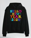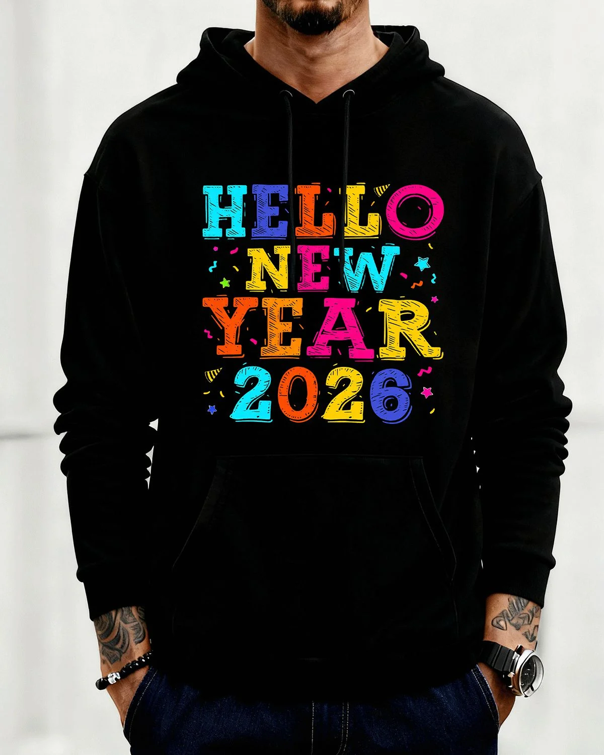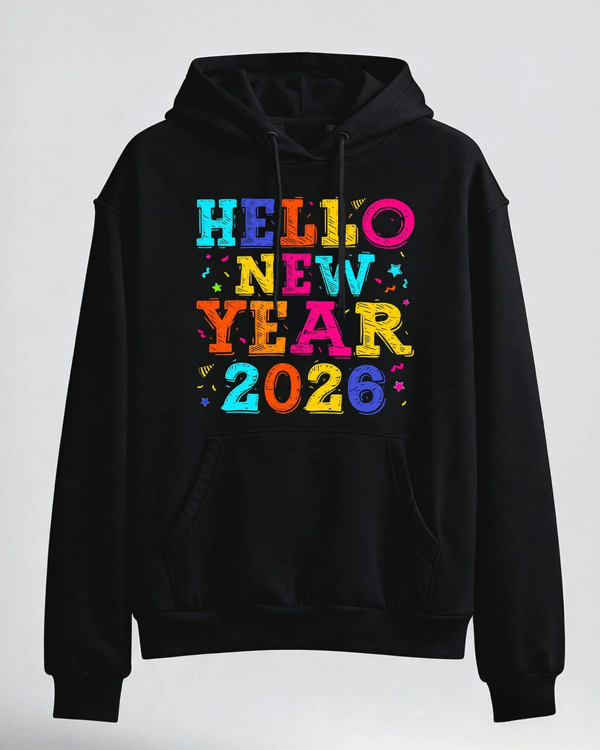 Hello New Year 2026 Colorful Confetti Cozy Graphic Hoodie for Men and Women - Casual Graphic, Long Sleeve, Soft Fabric, Comfortable Fit