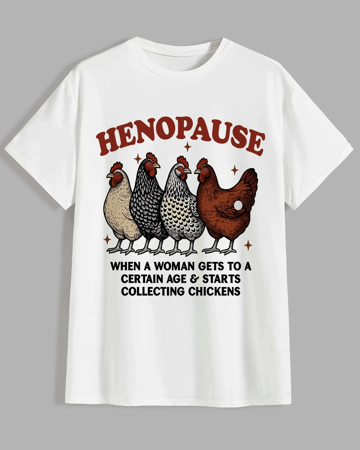 Henopause Chicken Collecting Humor Summer Cotton Graphic T Shirt-Casual Funny,Short Sleeve,Soft Fabric,Comfortable Fit