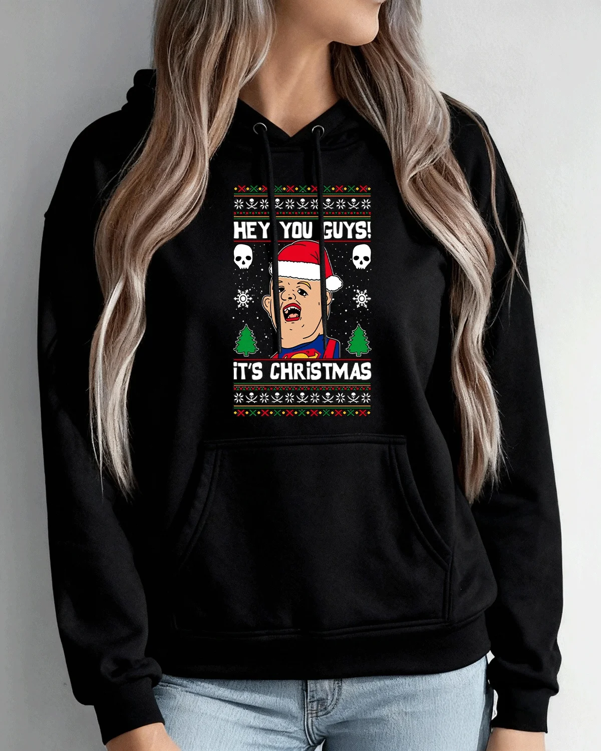 Hey You Guys It's Christmas Cozy Cotton Graphic Hoodie-Casual Retro,Long Sleeves,Soft Fabric,Comfortable Fit