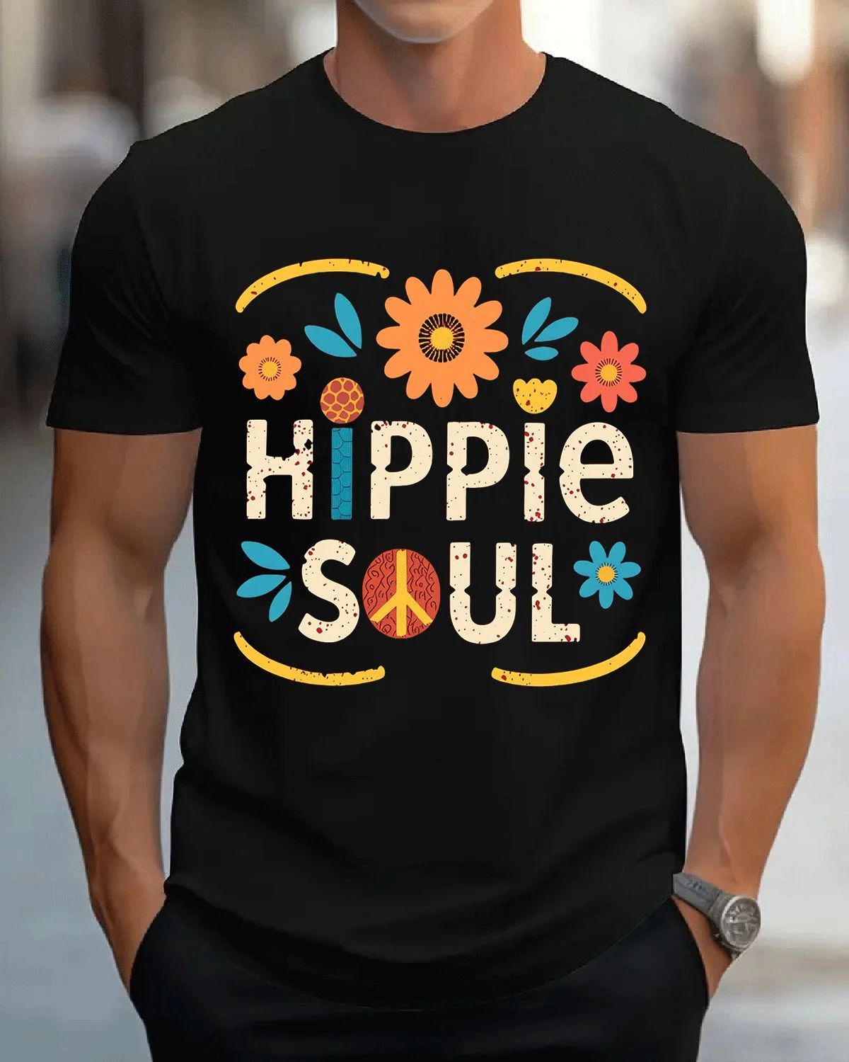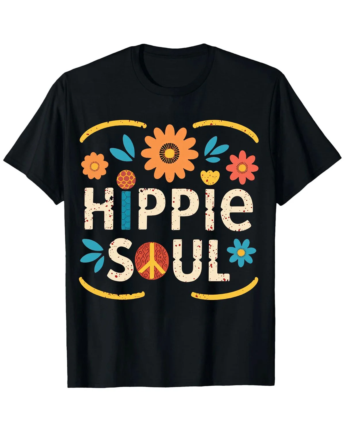 Hippie Soul Summer Cotton Graphic T Shirt - Vintage Boho, Short Sleeve, Soft Fabric, Comfortable Fit