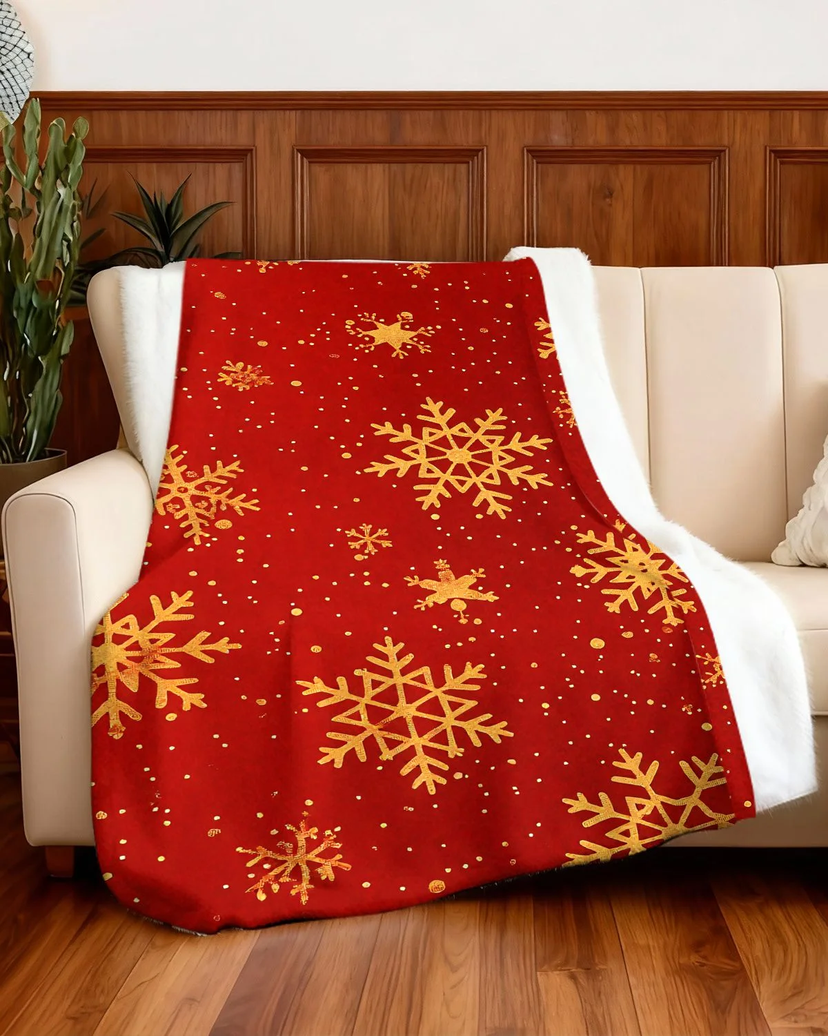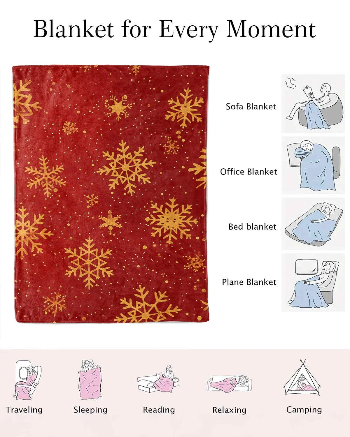 Holiday Blessings Golden Snowflake Blanket-Cozy Elegant,Super Soft,Warm,Plush,For Couch,Living Room Use