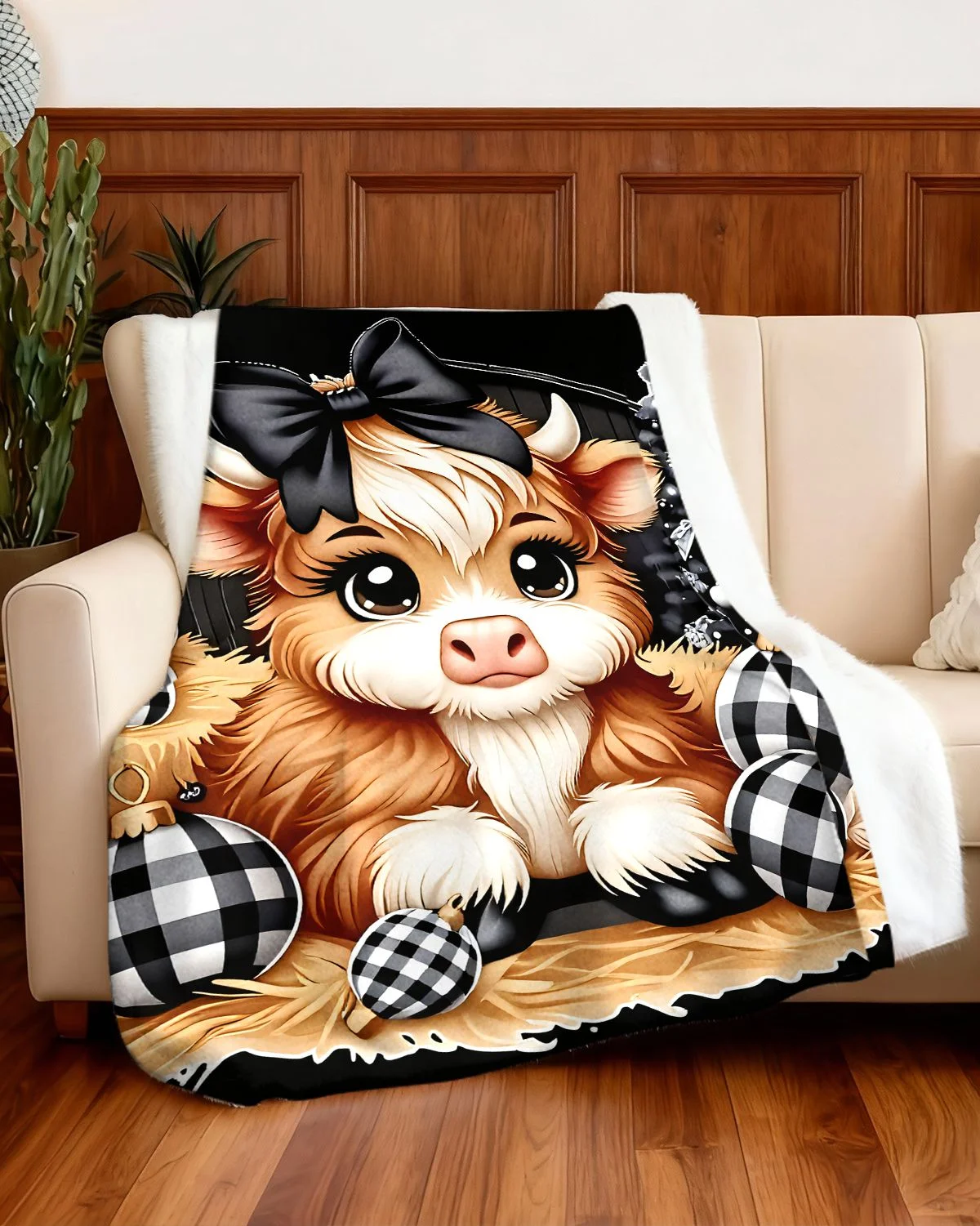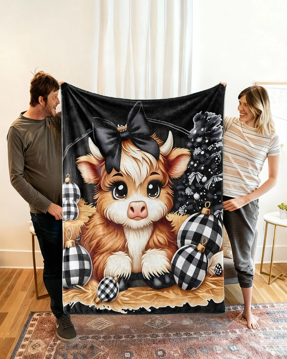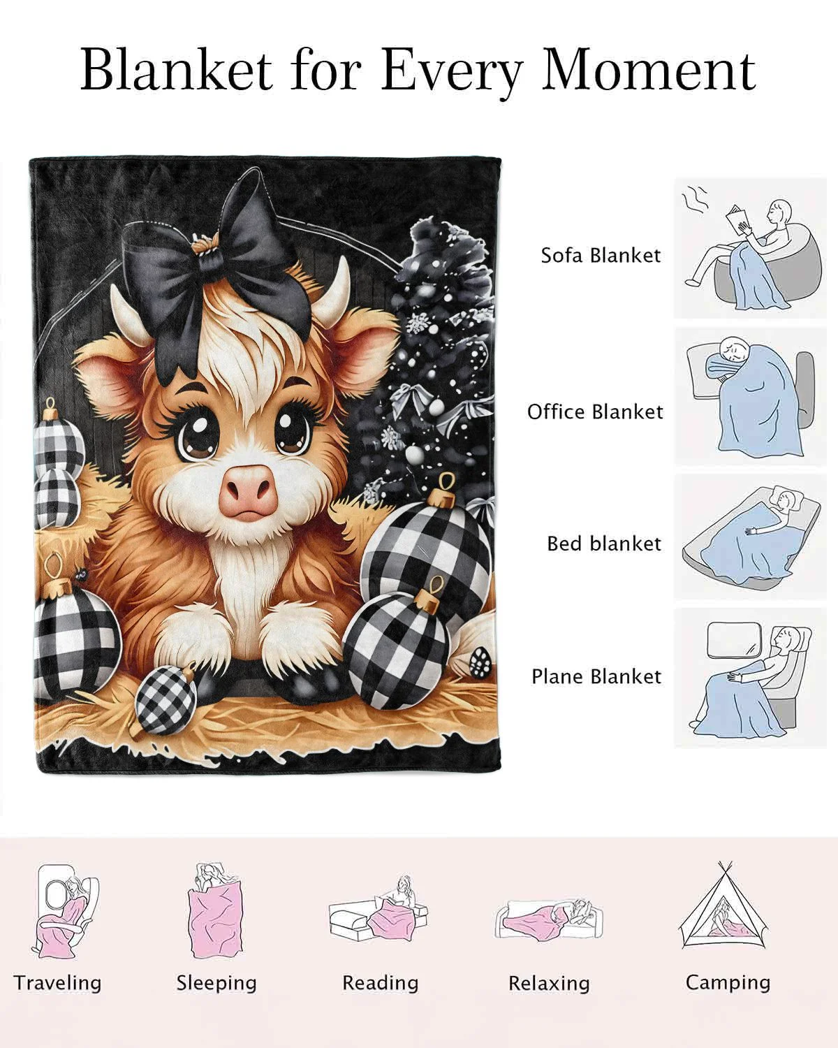 Holiday Love Highland Cow Gift Blanket-Cozy Cute,Plush,Warm,Skin-Friendly,For Couch,Living Room Use