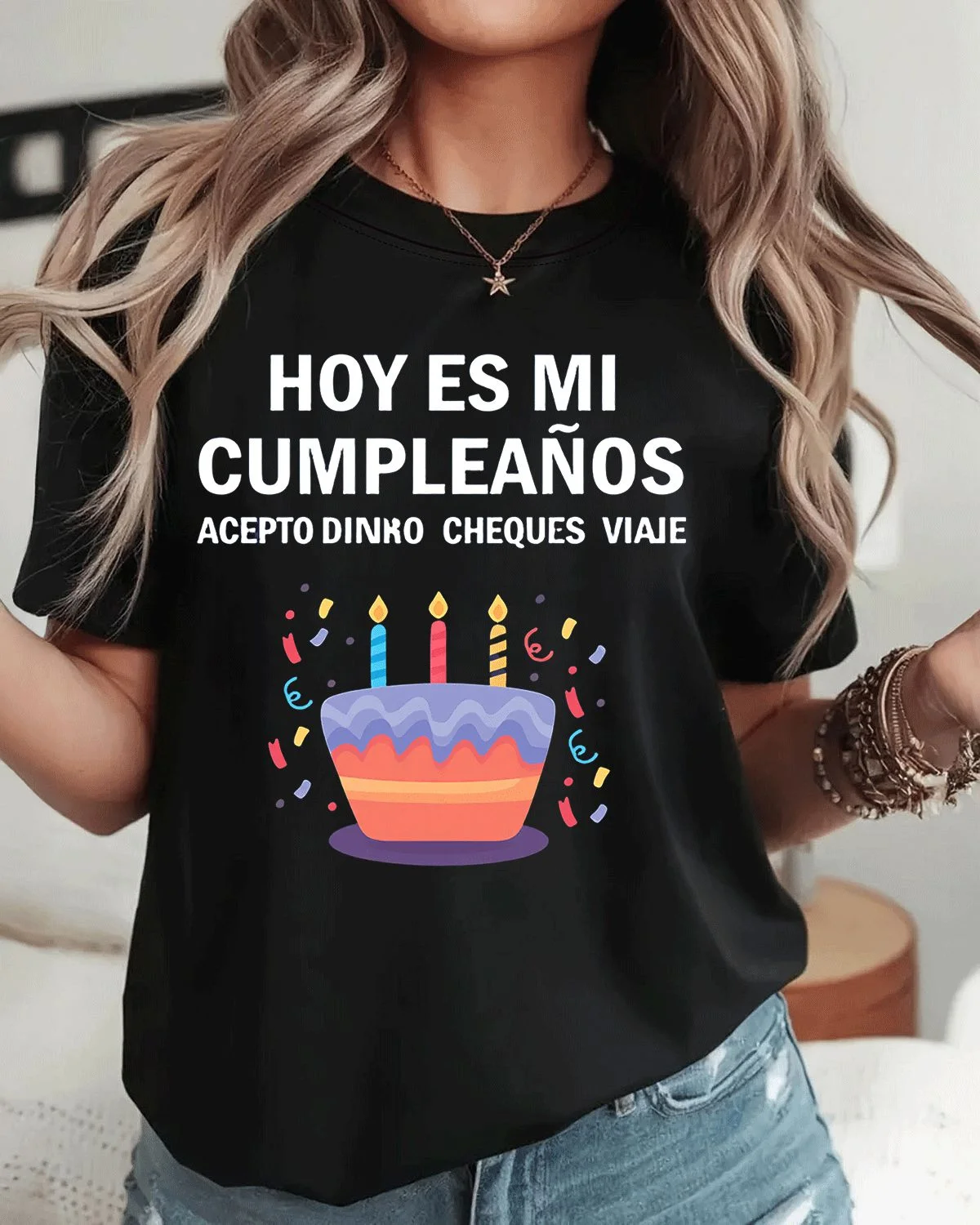 Hoy Es Mi Birthday Cake with Candles Summer Cotton Graphic T Shirt - Funny Casual, Short Sleeve, Soft Fabric, Comfortable Fit