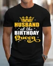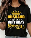 Husband of the Birthday Queen with Crown Summer Cotton Graphic T Shirt - Casual Funny, Short Sleeve, Soft Fabric, Comfortable Fit