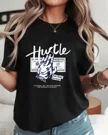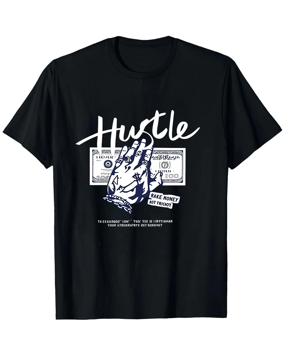 Hustle Hand Sign and Dollar Bill Summer Cotton Graphic T Shirt - Urban Street,Short Sleeve,Soft Fabric,Comfortable Fit