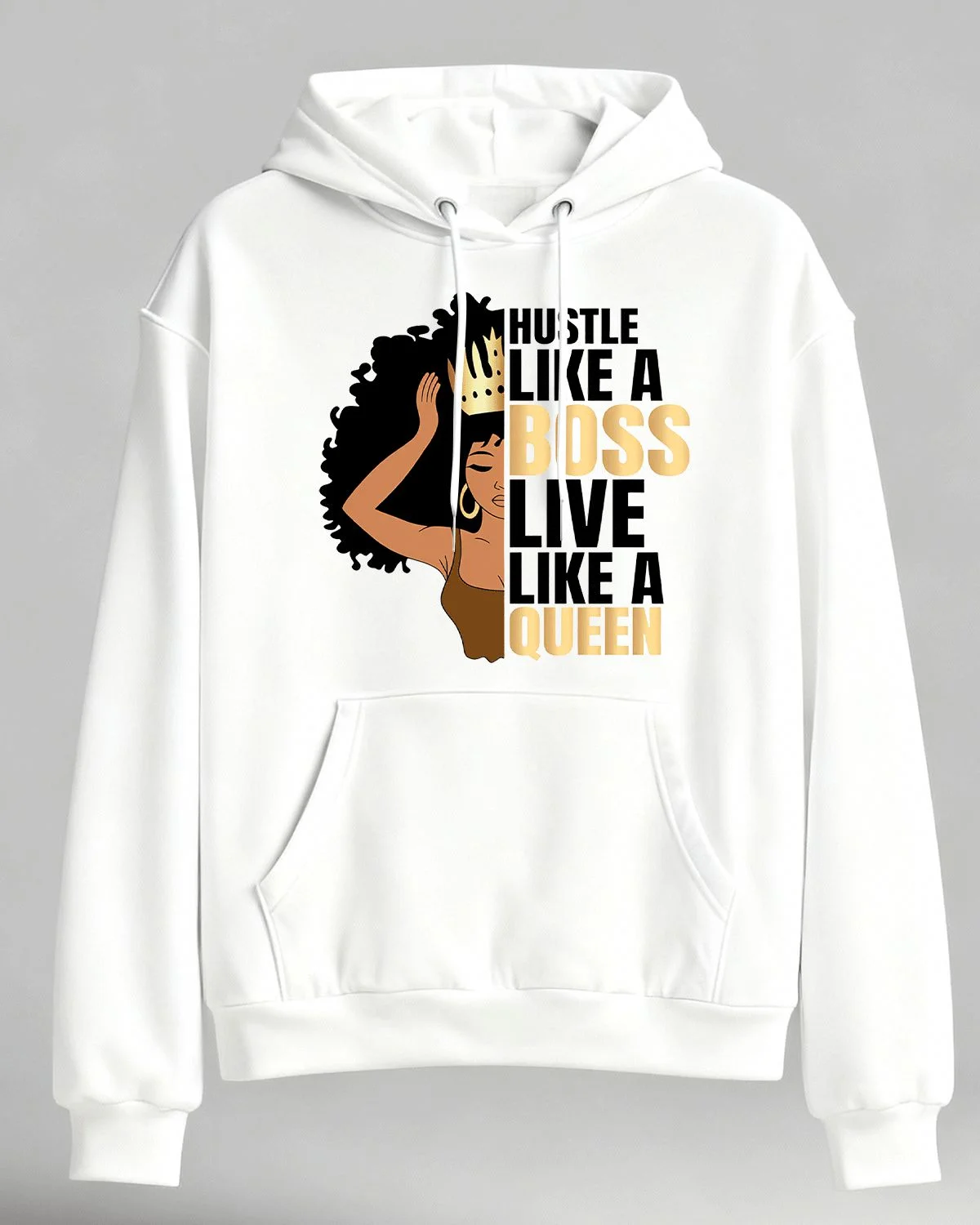 Hustle Like a Boss Live Like a Queen Cozy Graphic Hoodie for Men and Women - Casual Chic, Long Sleeve, Soft Fabric, Comfortable Fit
