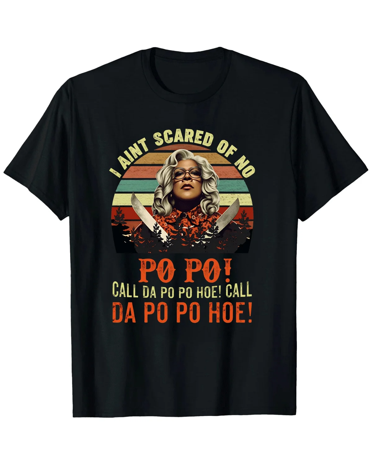 I Ain't Scared of No Po Po Summer Cotton Graphic T Shirt-Vintage Retro,Short Sleeve,Soft Fabric,Comfortable Fit