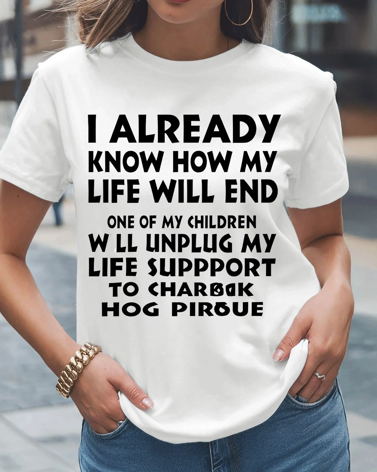I Already Know How My Life Will End Summer Cotton Graphic T Shirt - Casual Funny,Short Sleeve,Soft Fabric,Comfortable Fit