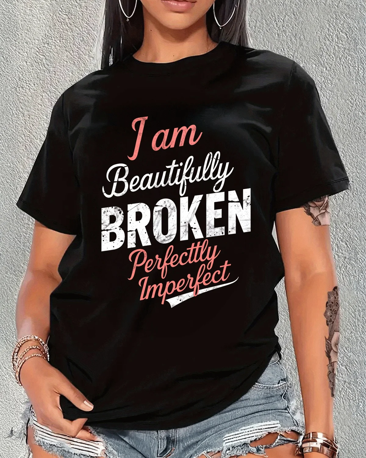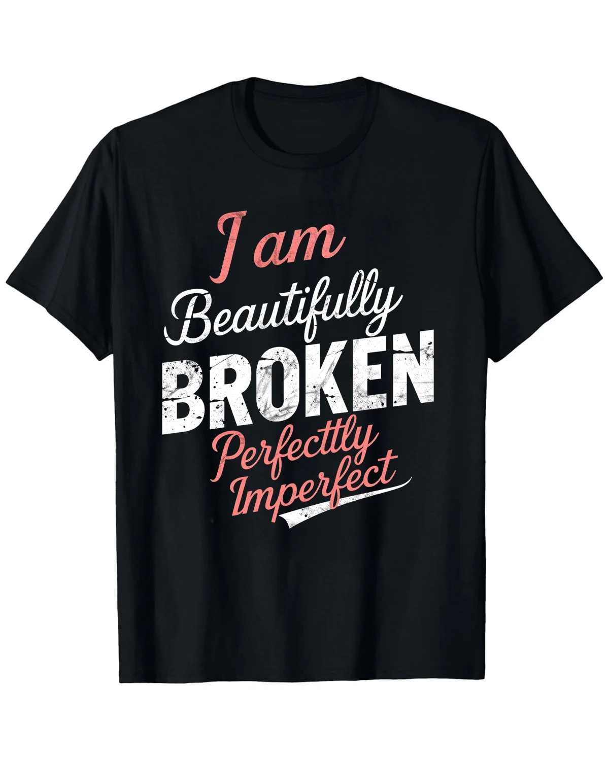 I Am Beautifully Broken Perfectly Imperfect Summer Cotton Graphic T Shirt-Casual Vintage,Short Sleeve,Soft Fabric,Comfortable Fit