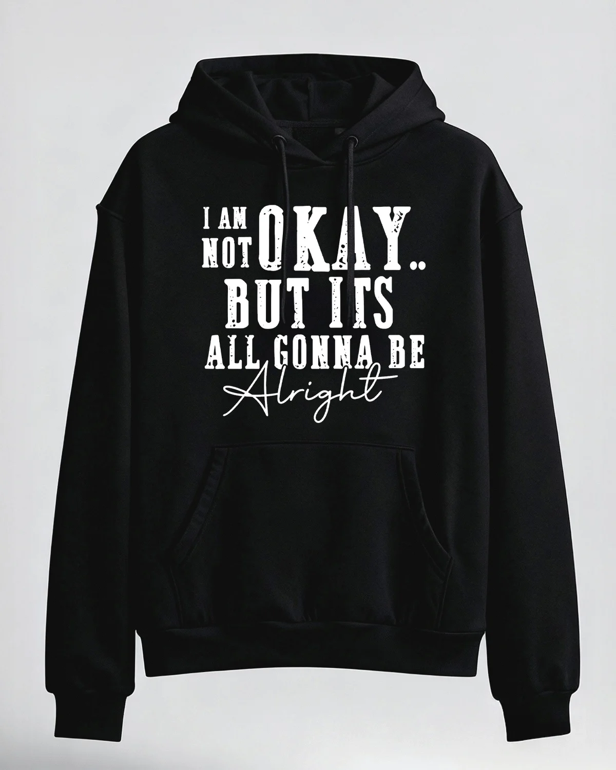 I Am Not Okay But Its All Gonna Be Alright Cozy Cotton Graphic Hoodie-Casual Vintage,Long Sleeves,Soft Fabric,Comfortable Fit