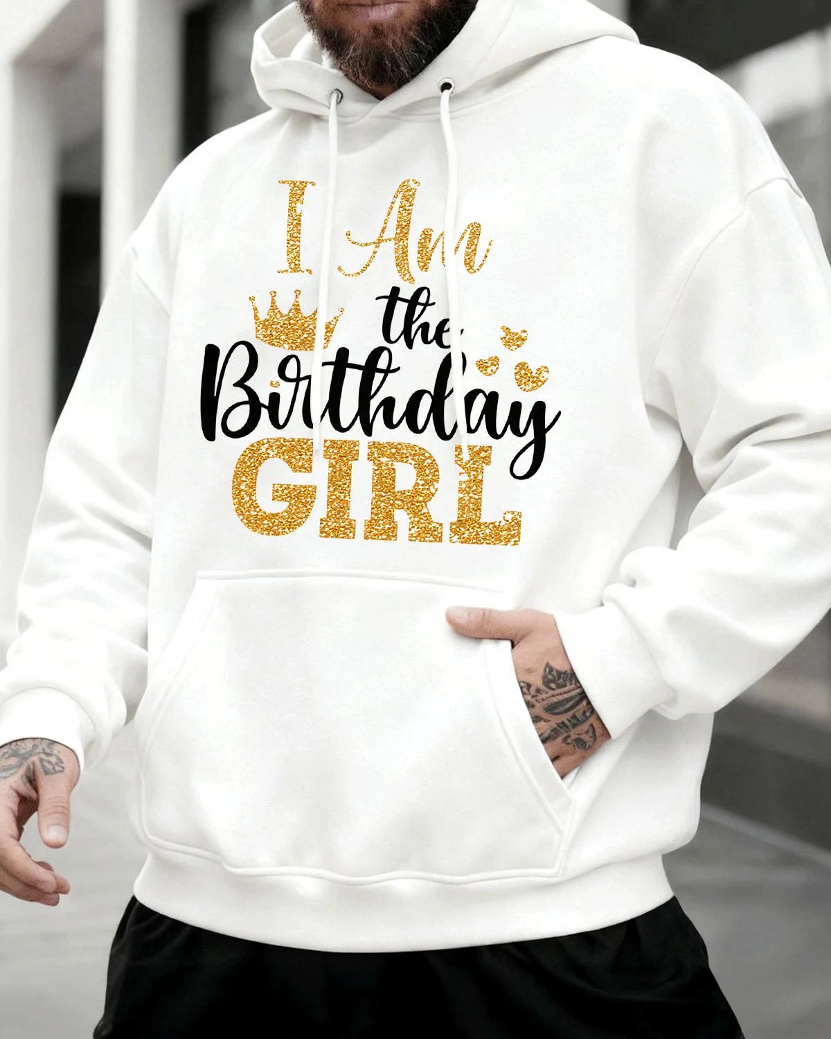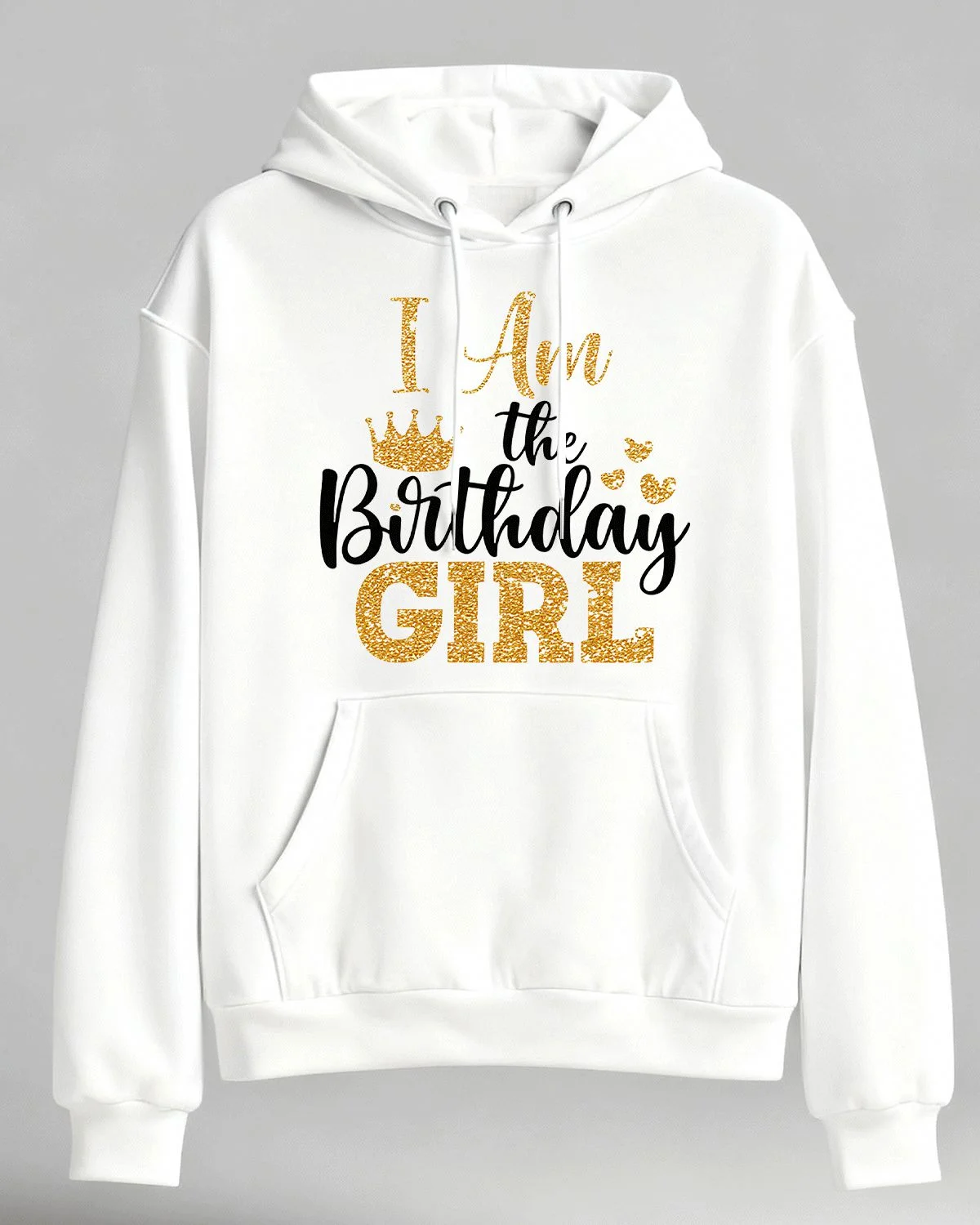 I Am the Birthday Girl with Gold Crown Cozy Graphic Hoodie for Men and Women - Casual Chic, Long Sleeve, Soft Fabric, Comfortable Fit