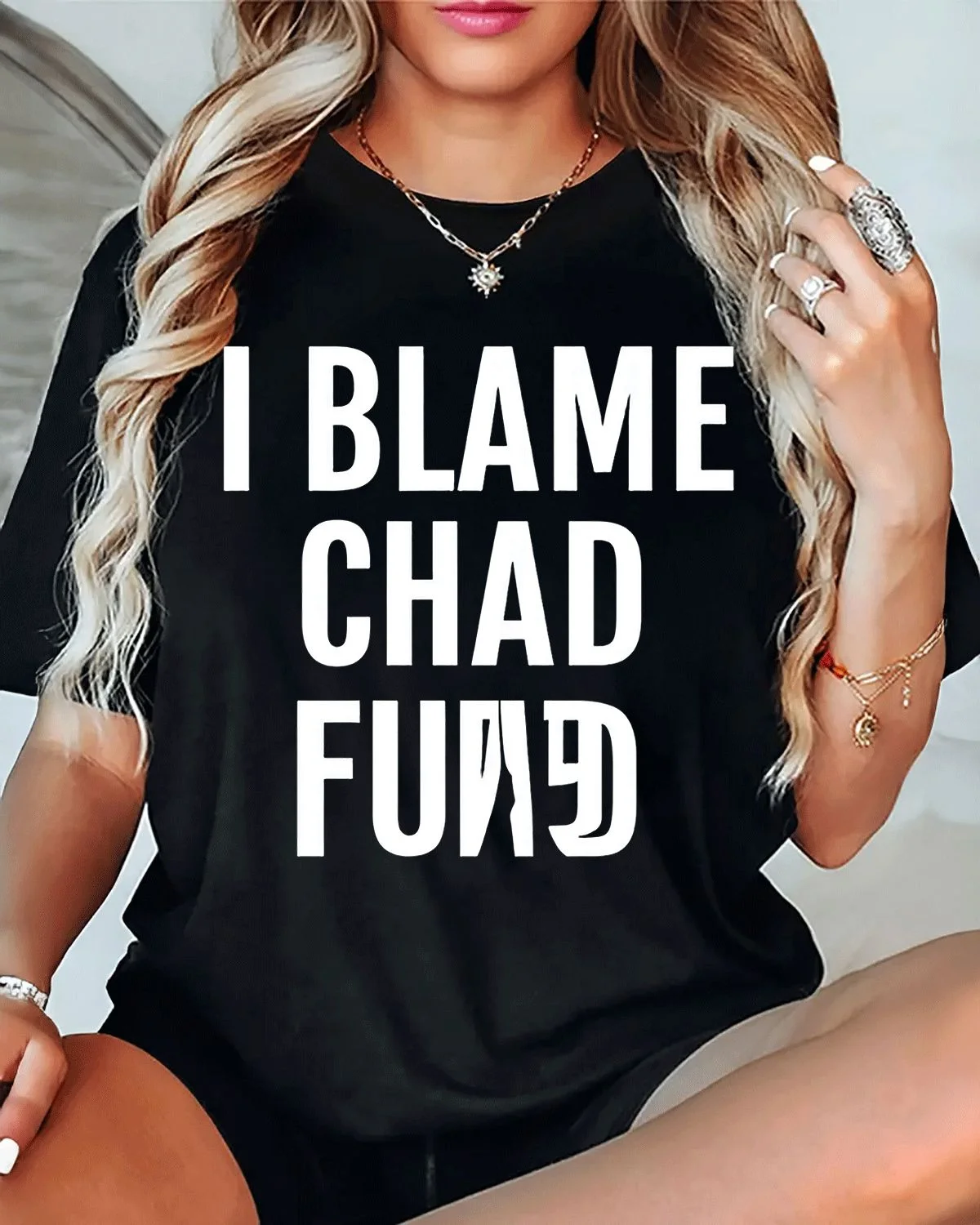 I Blame Chad Funny Summer Cotton Graphic T Shirt-Casual Retro,Short Sleeve,Soft Fabric,Comfortable Fit