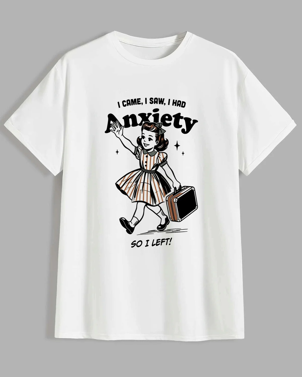 I Came I Saw I Had Anxiety So I Left Summer Cotton Graphic T Shirt-Vintage Retro,Short Sleeve,Soft Fabric,Comfortable Fit