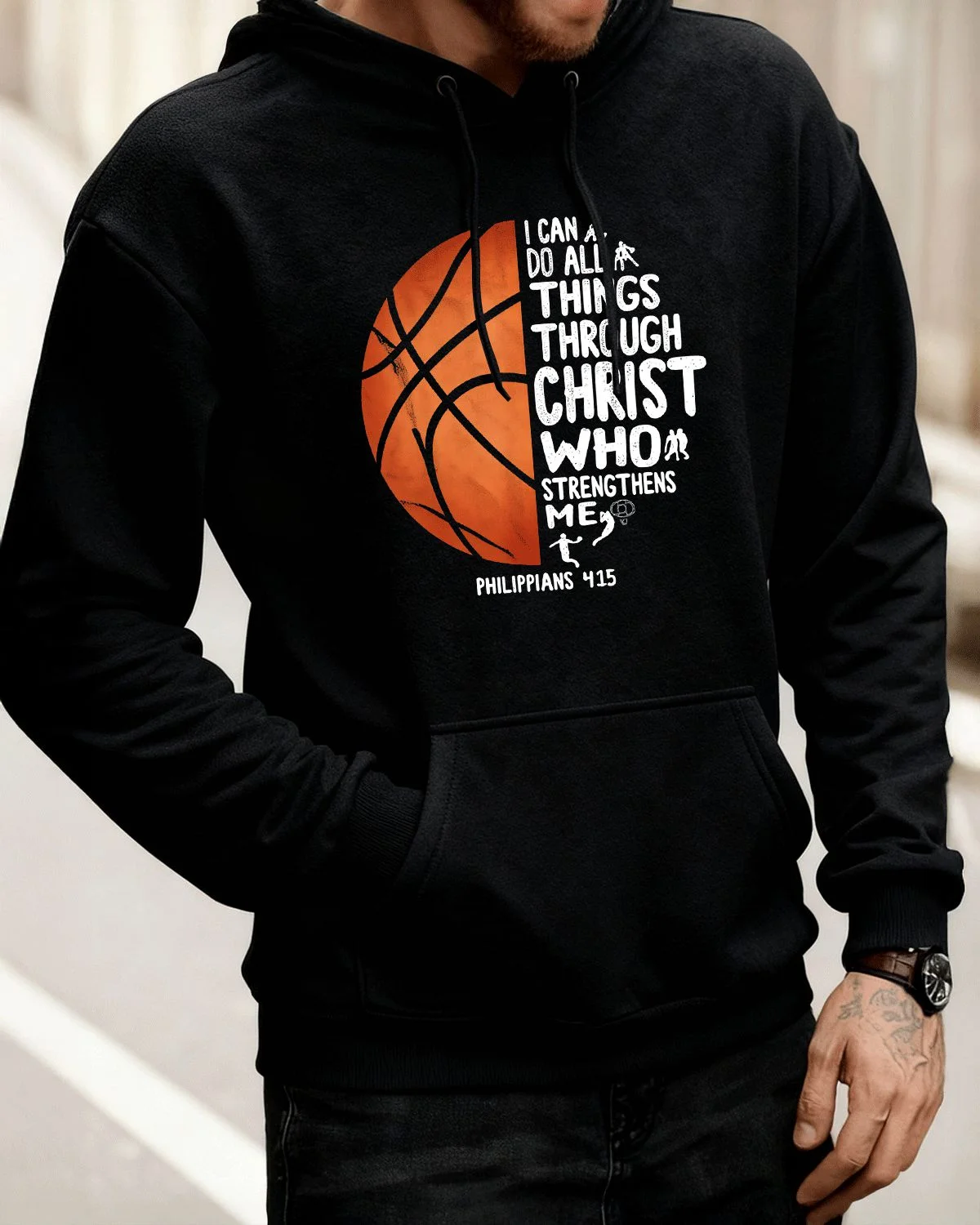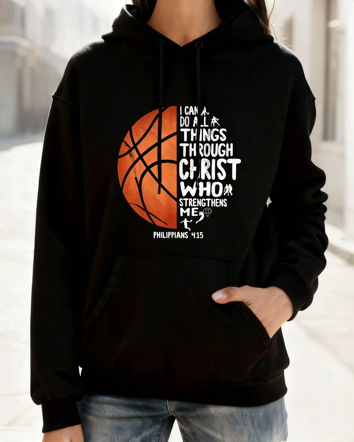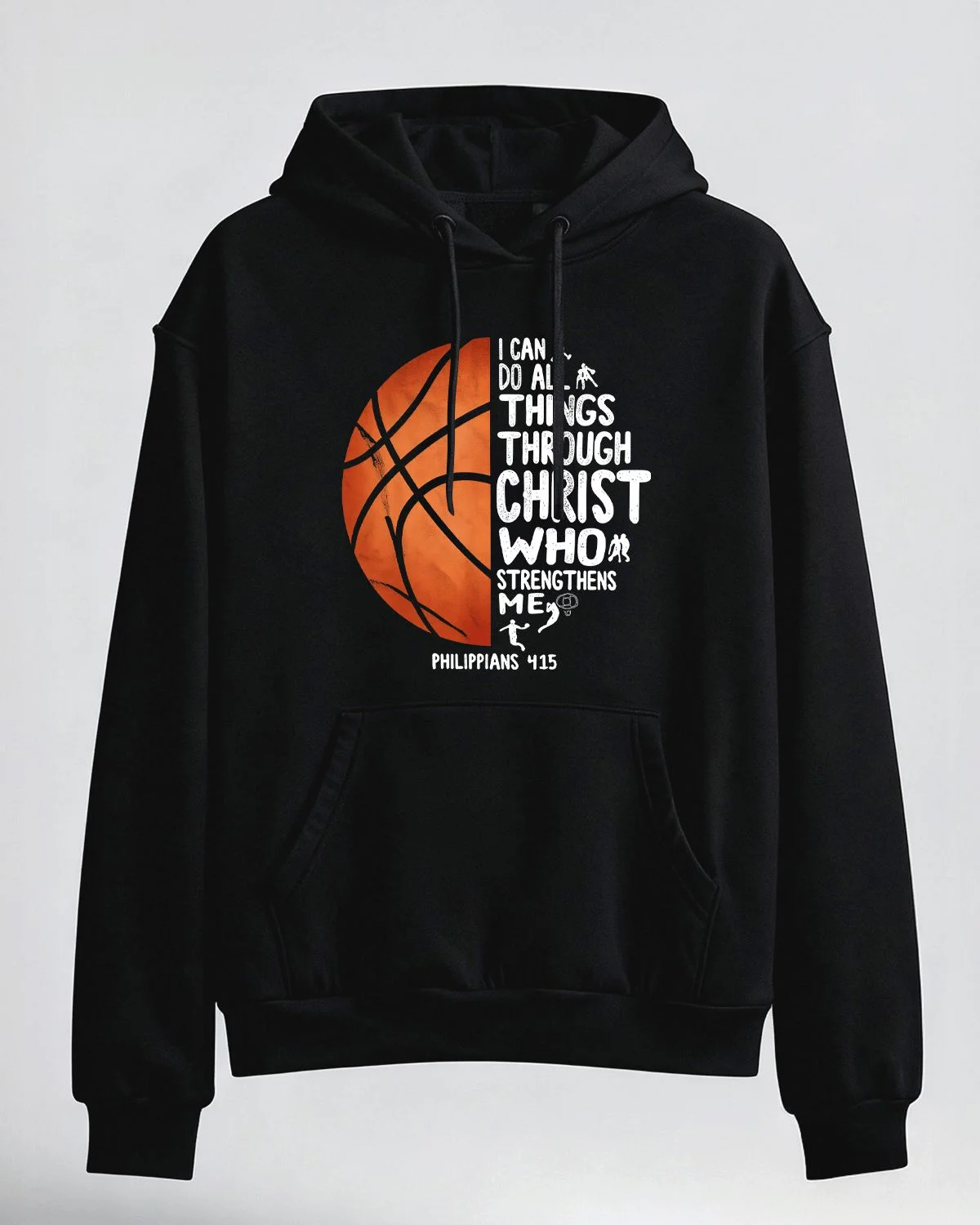 I Can Do All Things Through Christ Basketball Philippians 413 Cozy Cotton Graphic Hoodie with Pocket-Casual Sporty,Long Sleeve,Soft Fabric,Comfortable Fit